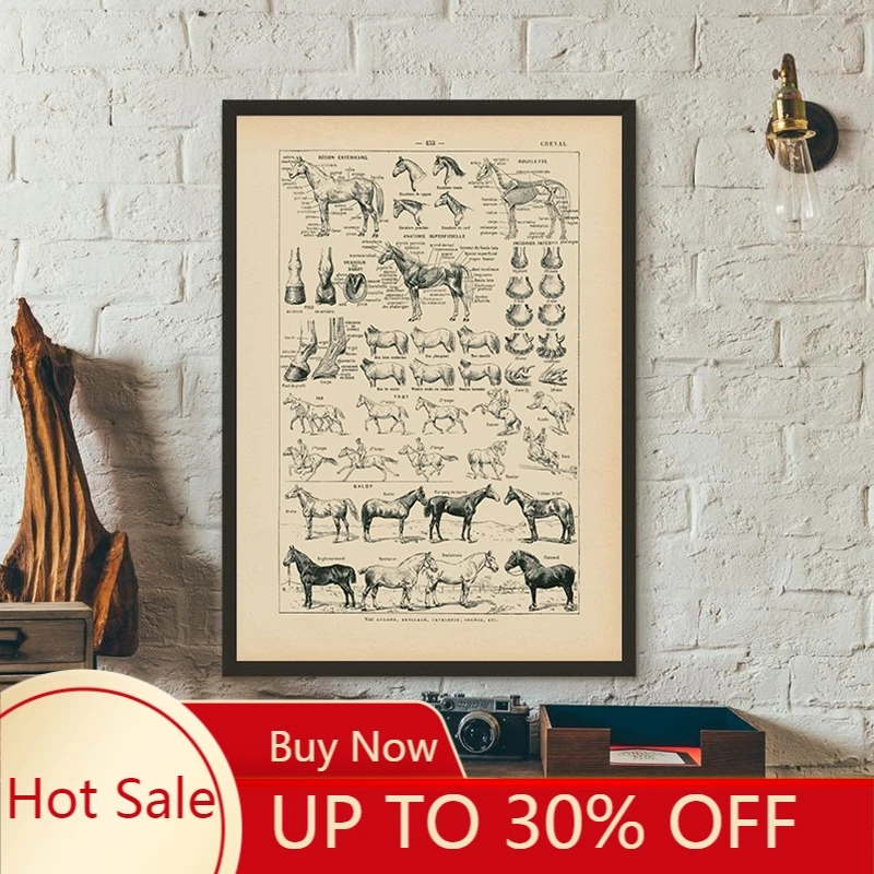 Винтажная карта анатомии лошадей, живопись на холсте, биология, настенный художественный декор, плакат, украшения 2021, плакат, офисный Декор