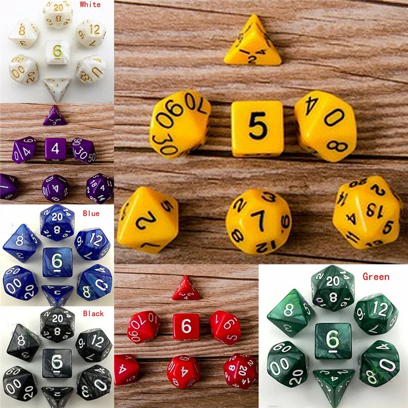 7 шт.компл. 16 цветов многогранные игральные кости d4 d6 d8 d10 d12 d20 Polyhedral TRPG, набор игральных костей для настольной игры, фотоsd