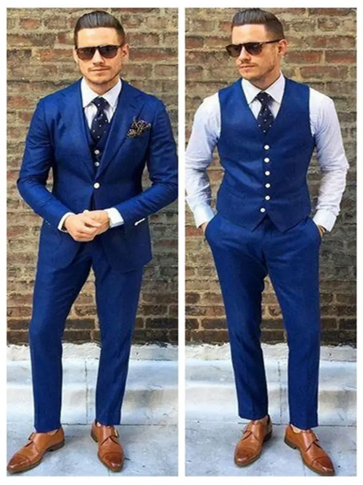 Дизайнерский мужской костюм из трех предметов, свадебные смокинги с двумя пуговицами, приталенные индивидуальные Формальные повседневные Костюмы для жениха (пиджак + брюки + жилет)