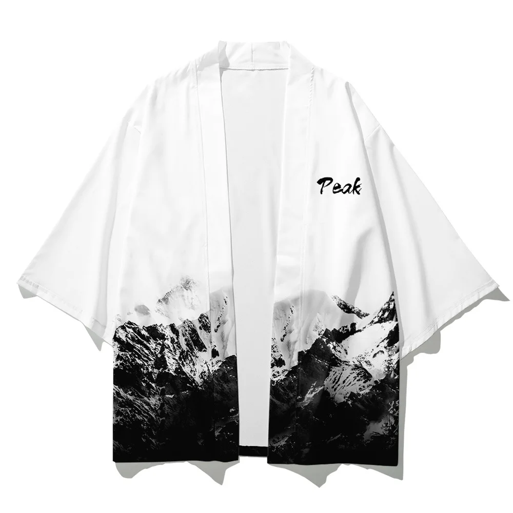 Кимоно мужское в китайском стиле, свободное кимоно с белым принтом,...