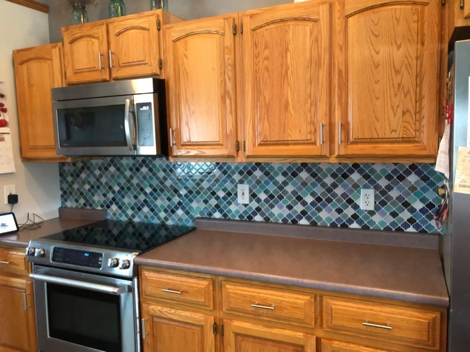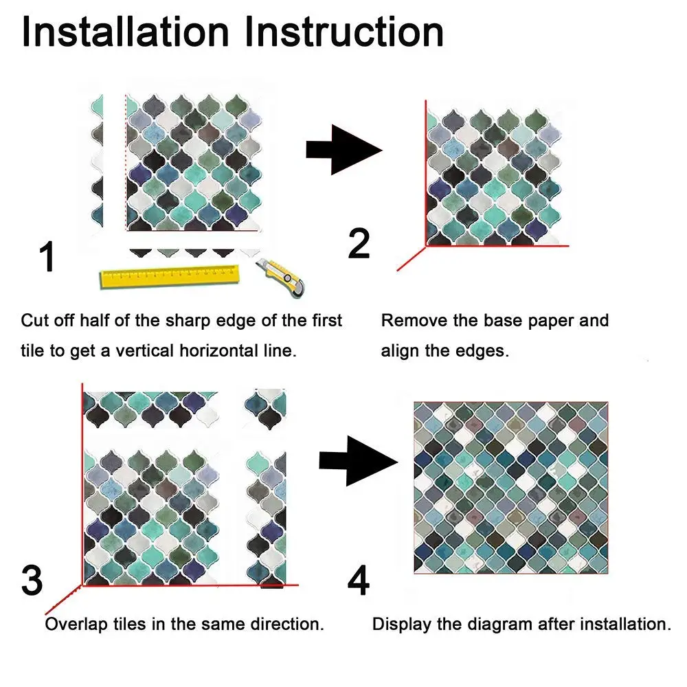 Плитку можно легко установить непосредственно на существующие панели или гладкую поверхность. Специально разработан для кухонного фартука и ванной фартука, плитка устойчива к жару плиты и влажности ванных комнат.