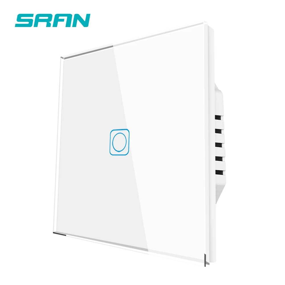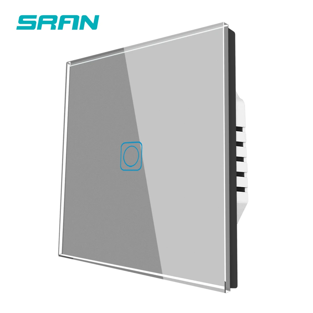 SRAN роскошный настенный сенсорный выключатель, стандарт ЕС, светодиодный светильник 220 В, выключатель питания, серое Хрустальное стекло, 1 банда, 1Way переключатель 82*82