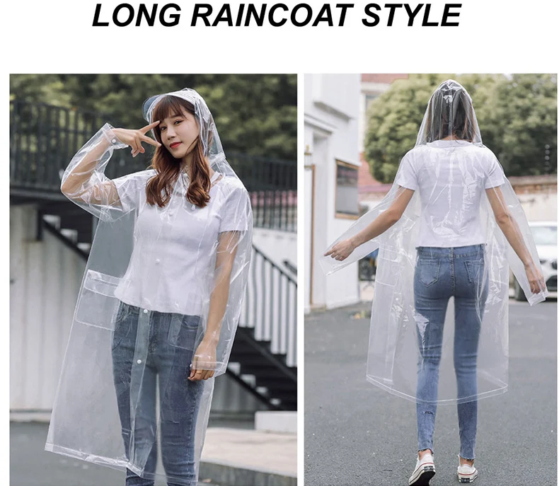 Материал: экологически чистый эва Цвета: прозрачный Узоры: стиль длинного плаща, стиль плаща-рюкзака Посылка: 1 шт. в 1 подходящую сумочку из того же материала Рекомендации по стирке: ручная стирка Размеры: M, L, XL