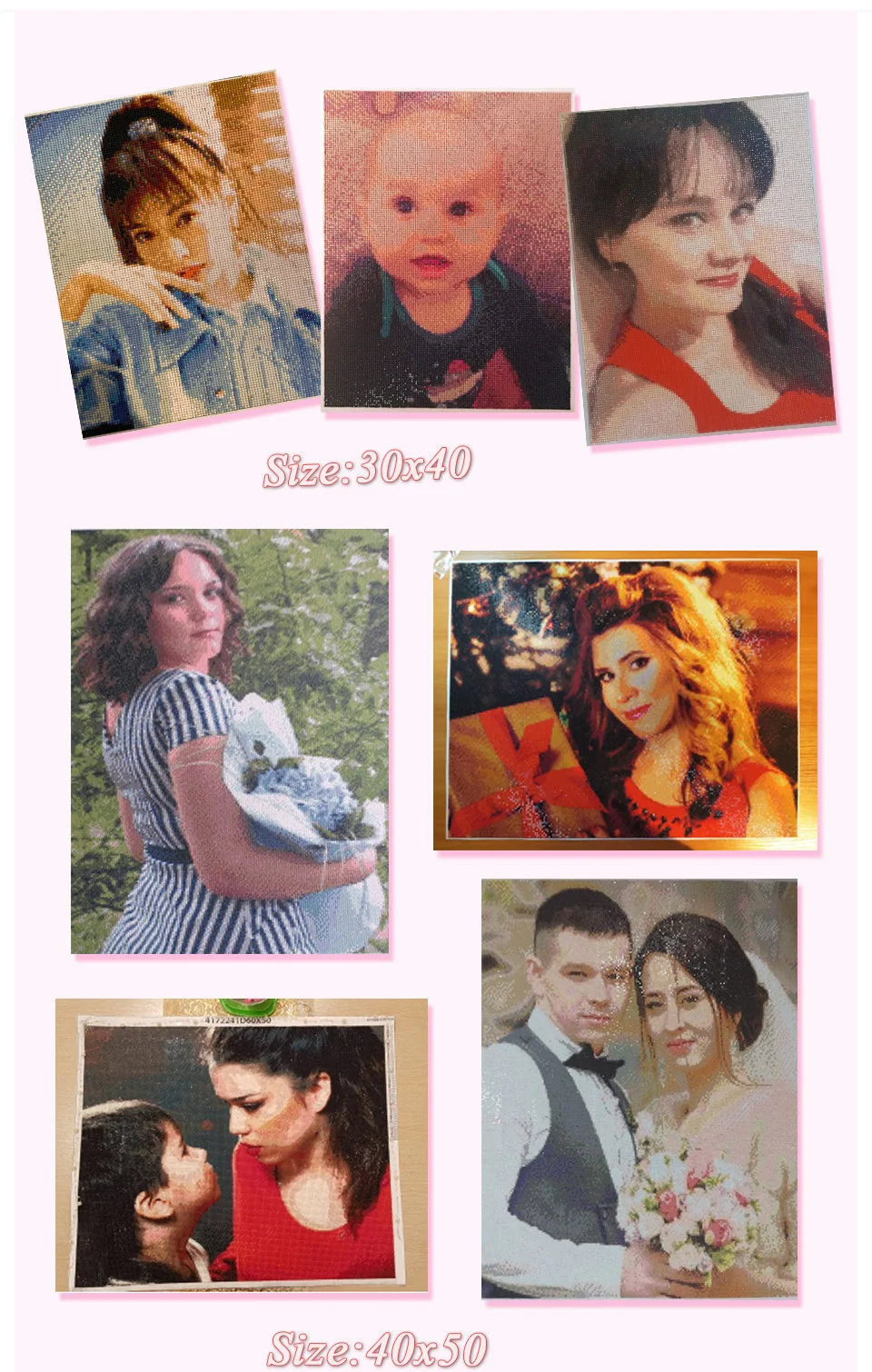 При производстве алмазов будет разница в цвете, но наш дизайнер постарается сделать вашу фотографию лучше, также будет иметь разницу в размере (1-2 см) на холсте.