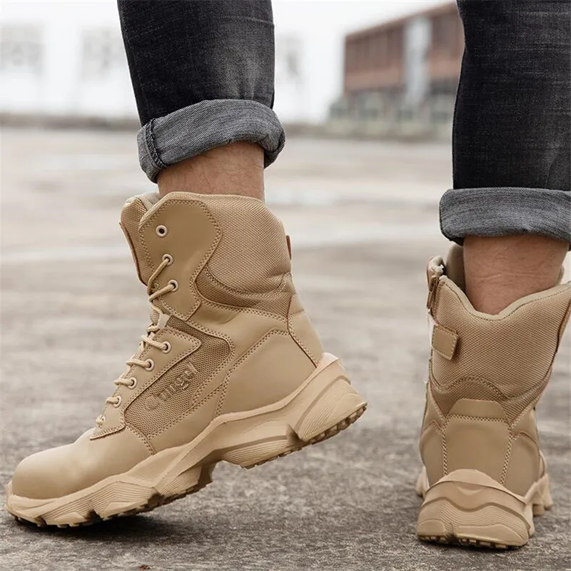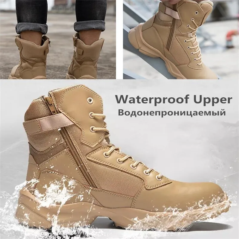 Кроссовки мужские рабочие со стальным носком, водонепроницаемые армейские военные тактические боевые ботинки, ботинки для пустыни, Осень-зима