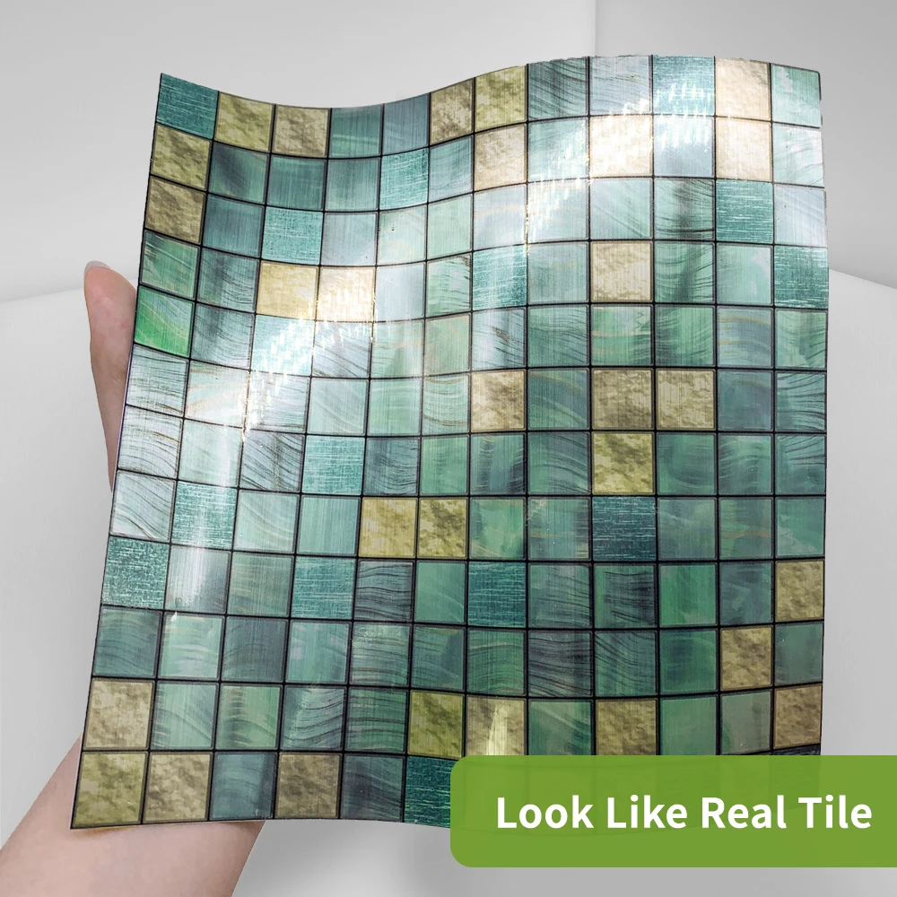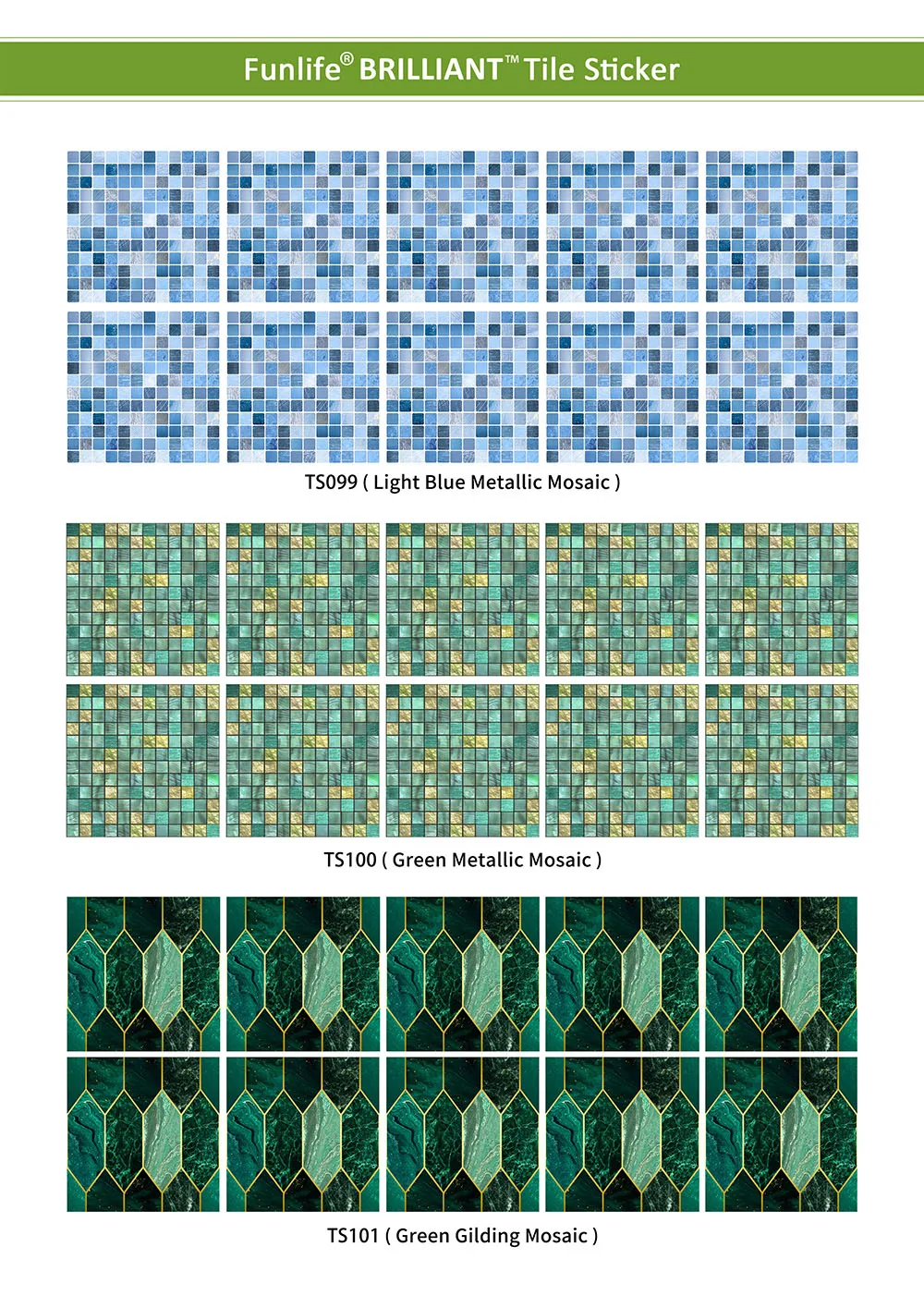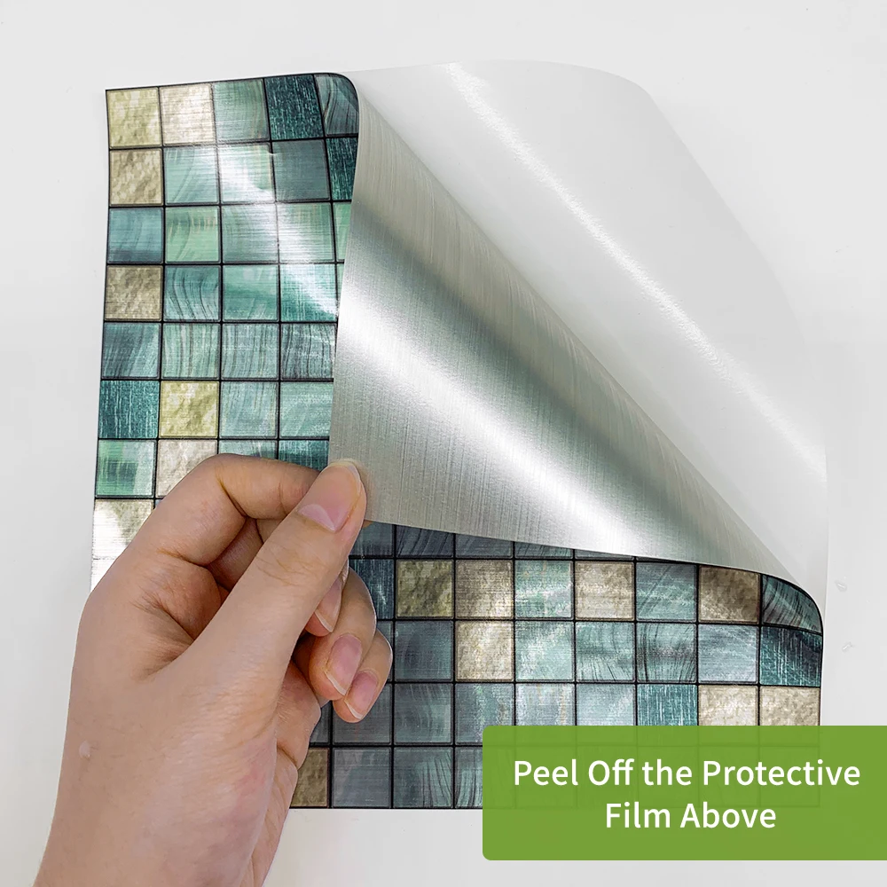 FunlifeЗеленая металлическая мозаичная Наклейка на стену, съемная маслостойкая декоративная наклейка на плитку для кухни, ванной комнаты