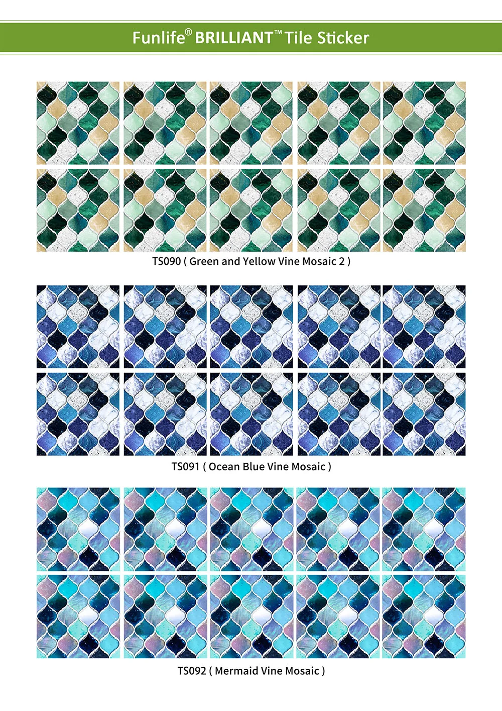 Наклейки для мозаичной плитки, ПВХ, водостойкие, 15x1520x20 см