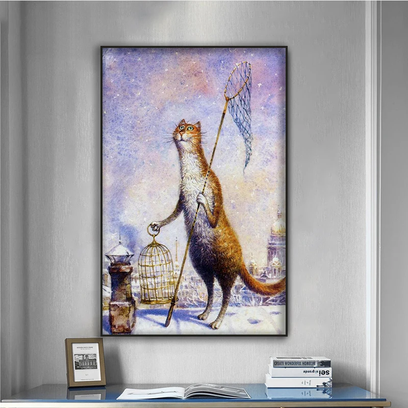 Красочный живопись маслом Кот холст абстрактная живопись Настенная ...