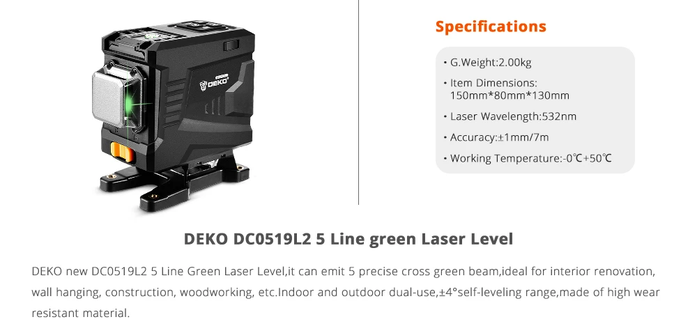 Лазерный уровень DEKO DKLL12PT1 с 12 зелеными линиями Лазерный уровень 3D с горизонтальными и птичьими линиями, 360 автоматический