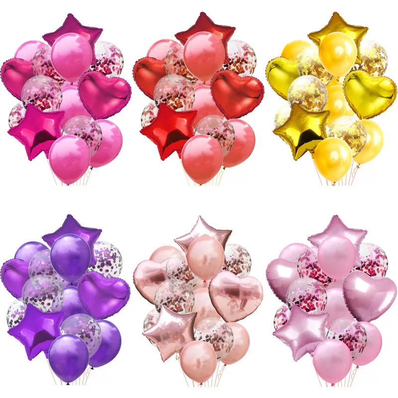 * 2шт 18-дюймовый шар в форме сердца * 2шт 18-дюймовый Звездный шар * 5 шт. 12 дюймов воздушный шар "Конфетти" * 5 шт 12-дюймовый латексный шар Обратите внимание: внутри имеется набор из 10 шт.