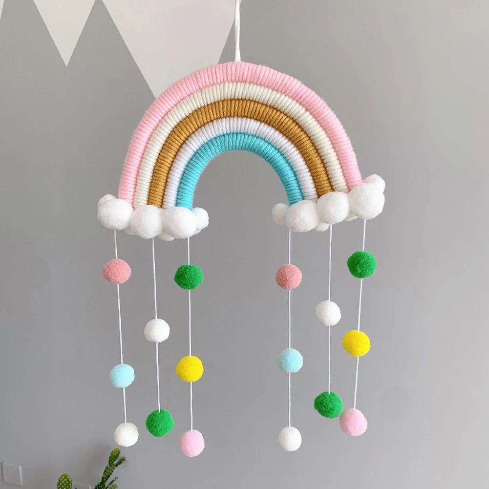 Настенные подвески в скандинавском стиле с радужными облаками и дождевиками, украшение для детской комнаты, спальни, подвеска для детской кровати, палатки, Игрушка-подвеска