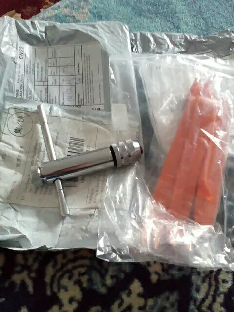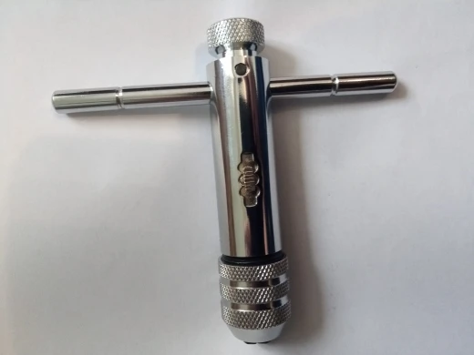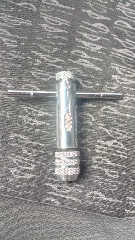 Трещетка отличного качества, 3 положения: трещит по часовой и против часовой, просто зажимает. Можно вставить метчик или сверло.