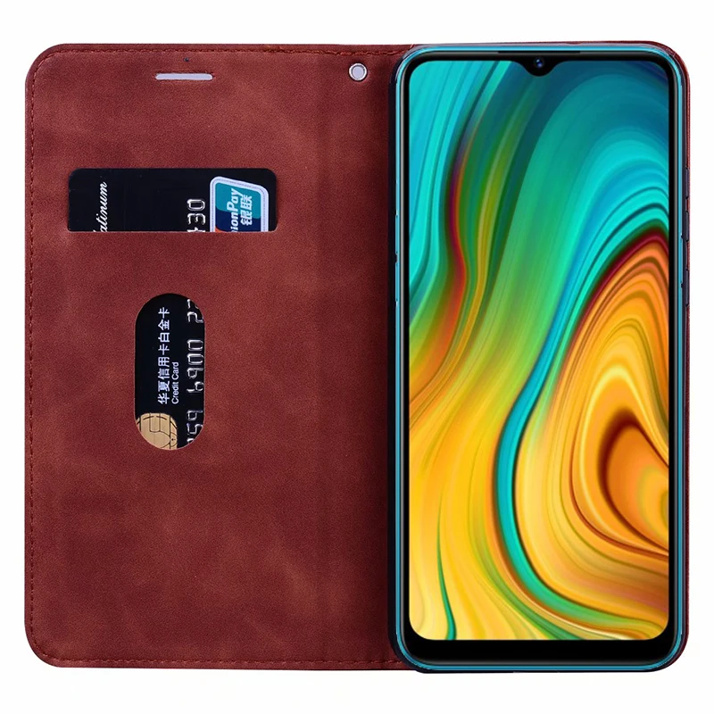 Чехол-книжка для Realme C3, кожаный, с отделением-бумажником
