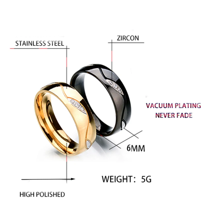 Auxauxme 6 мм очаровательные кольца для влюбленных с фианитами и камнями, ювелирные изделия для пар, золотые и черные свадебные кольца из нержавеющей стали, подарки на годовщину
