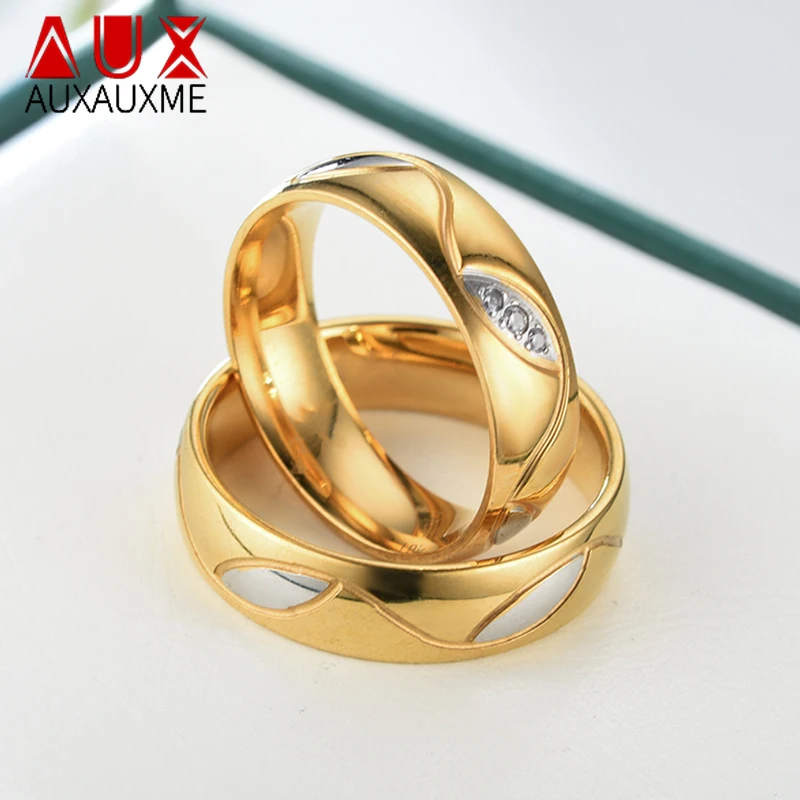 Золотые обручальные кольца Auxauxme, пара ювелирных изделий из нержавеющей стали для женщин и мужчин, кольцо с кристаллом, подарки для помолвки