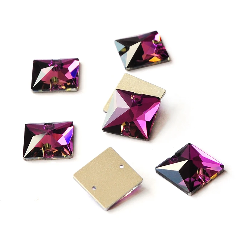 CTPA3bl 3240 Аметистовые Стразы с верхним хрусталем для шитья Стразы квадратной формы со стеклянными кристаллами для шитья стразы с плоской задней стороной с 2 отверстиями для шитья
