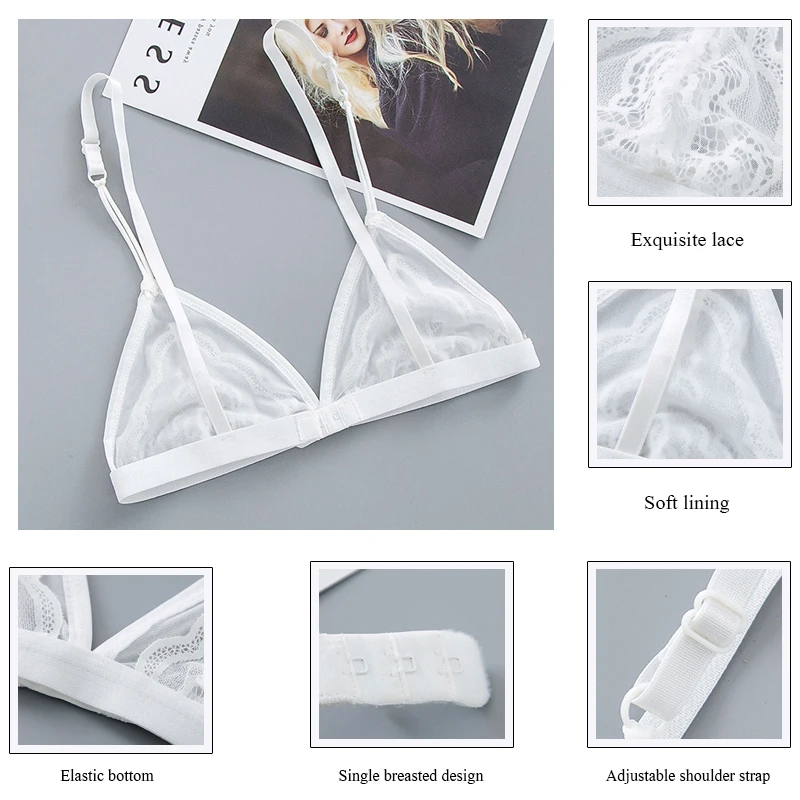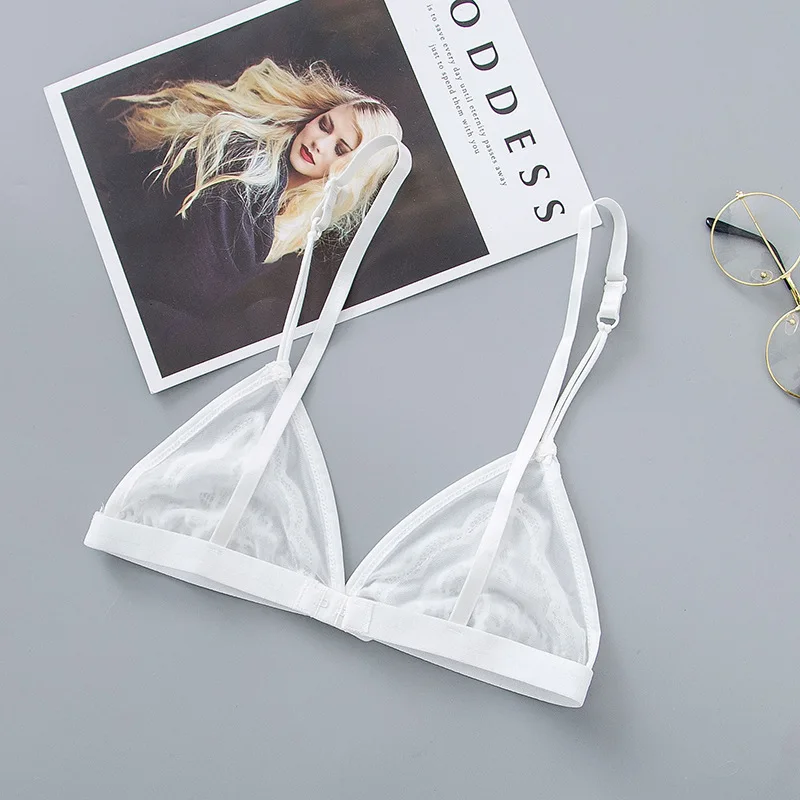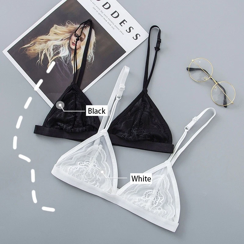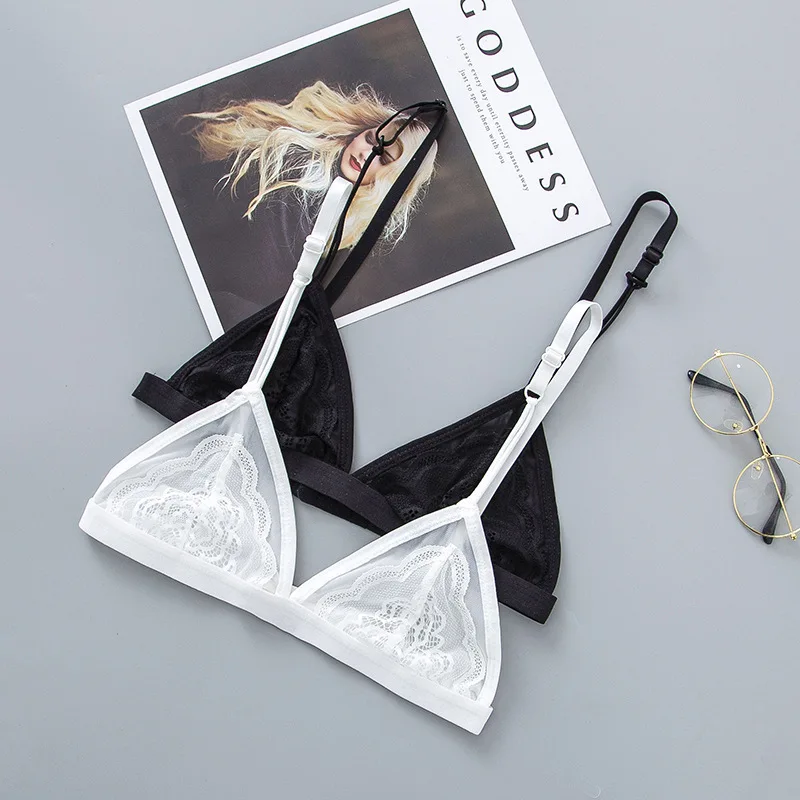 Бюстгальтер женский кружевной, прозрачный, без косточек, с треугольными чашечками