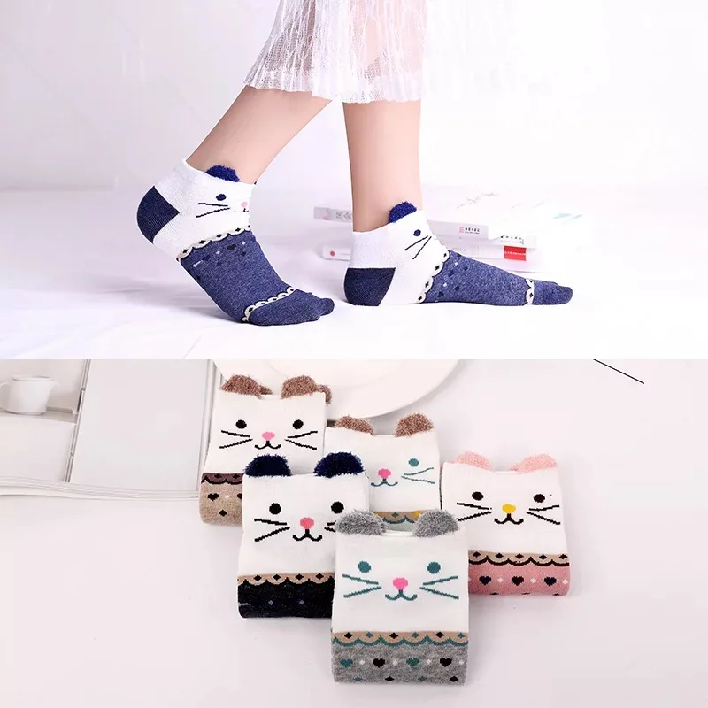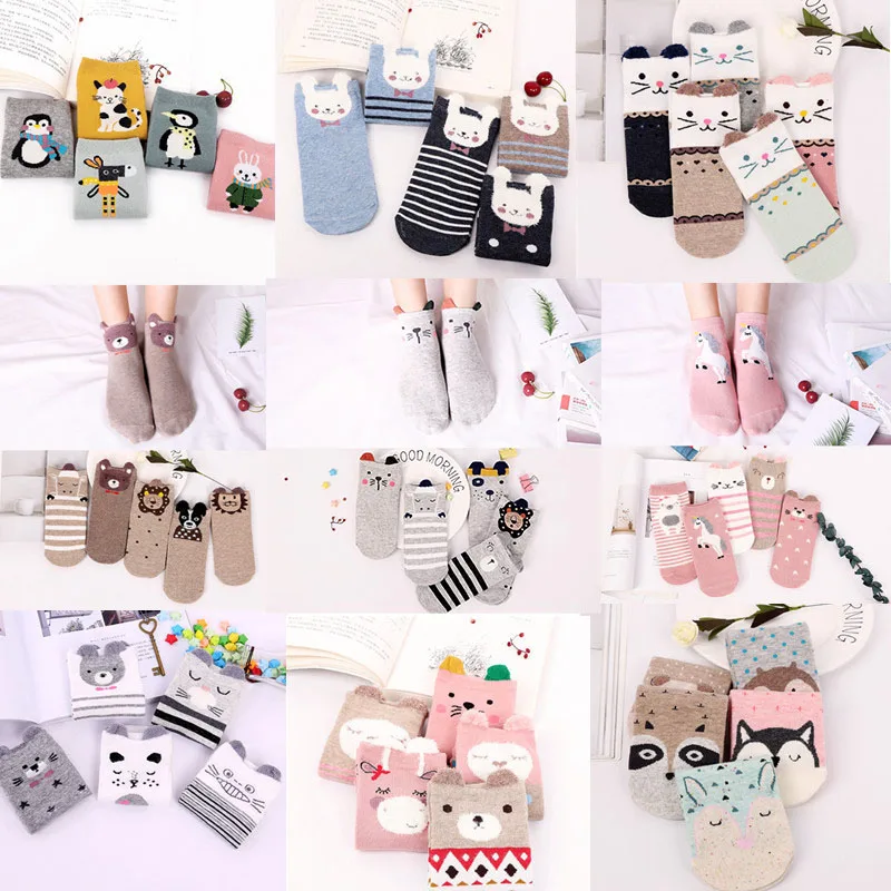 5 пар в партии, пакет для женщин носки новые продукты дизайн с изображением животных; Стереоскопические с ушками и изображением персонажей мультфильма, смешные счастливых милые коттоновые носки