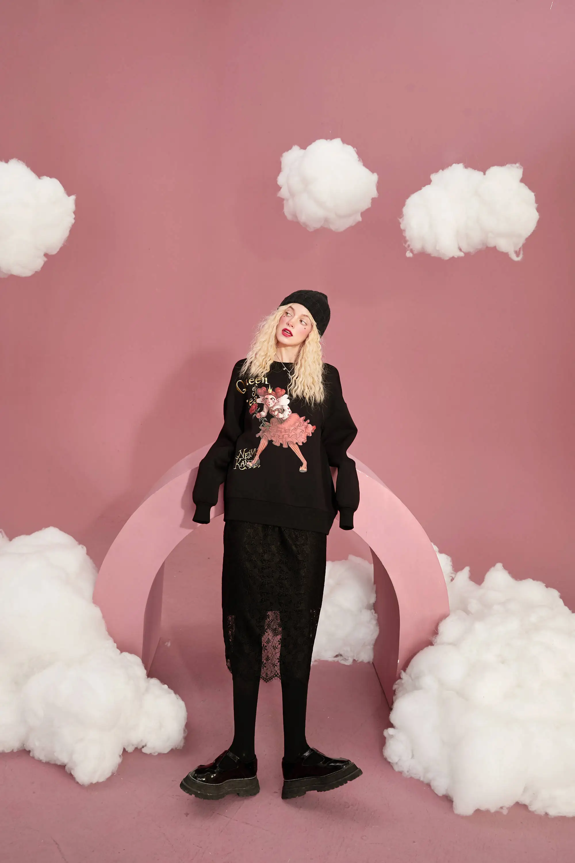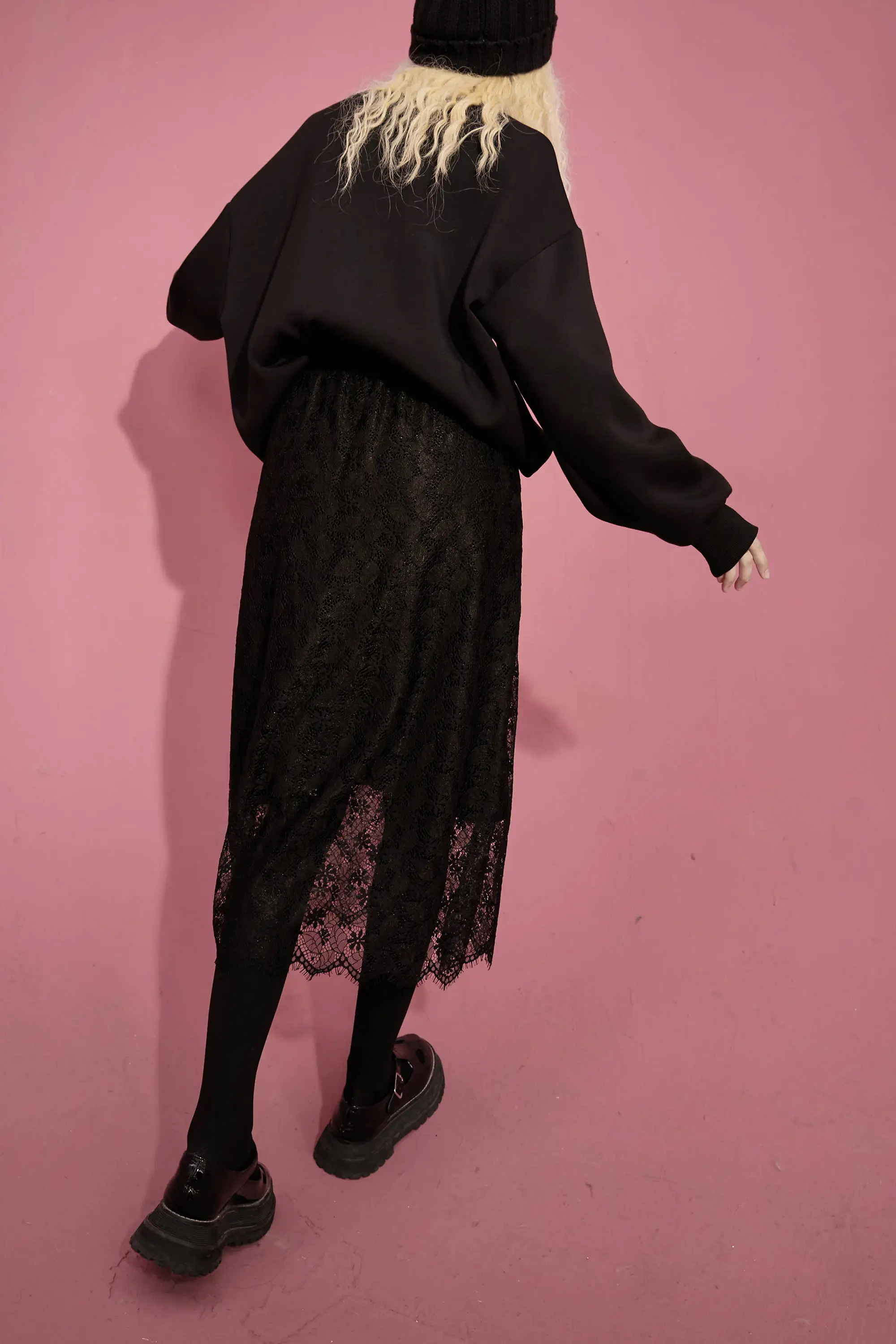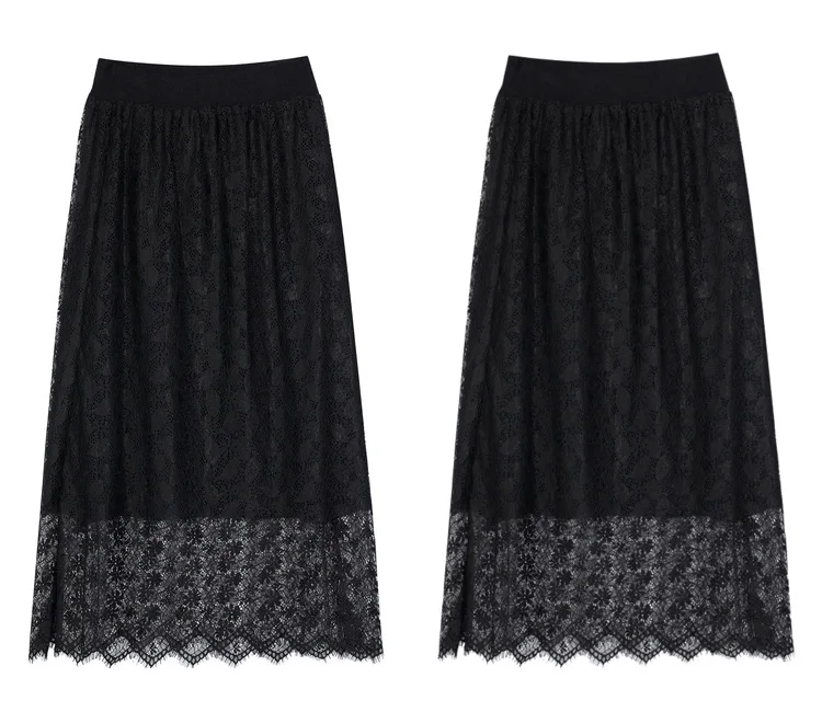 ELFSACK однотонные контрастные кружевные повседневные трикотажные женские миди юбки, осень 2020, винтажная Высокая талия ELF, Корейская Дамская Базовая Повседневная Нижняя часть