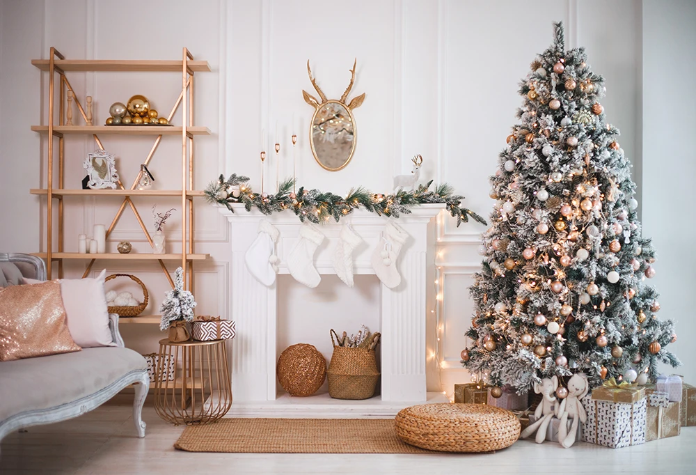 Фотофон Рождественский камин Интерьер Декор Вечеринка Новорожденный ребенок фотография фон студия фотозвонки PropsW-4492