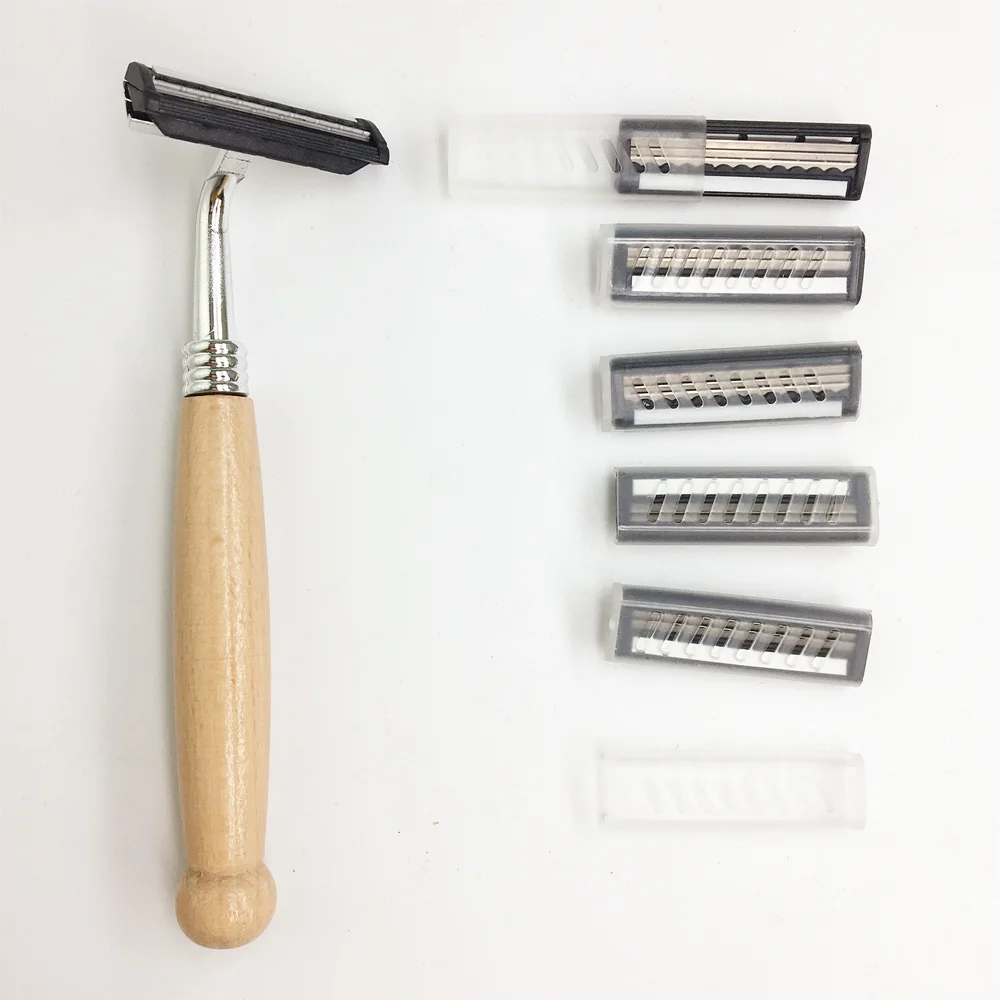 10 шт., безопасная бритва из натурального бамбука с деревянной ручкой