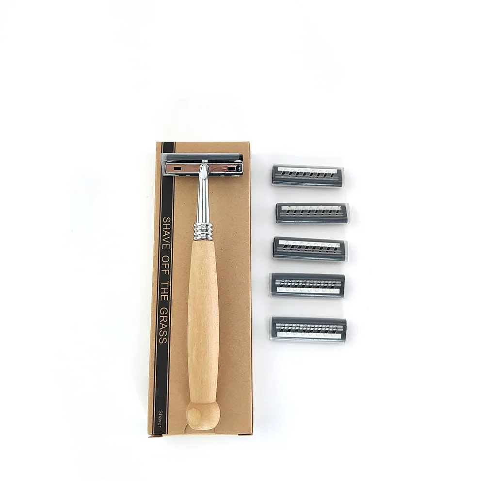 Бритва мужская многоразовая с двумя лезвиями, с деревянной ручкой
