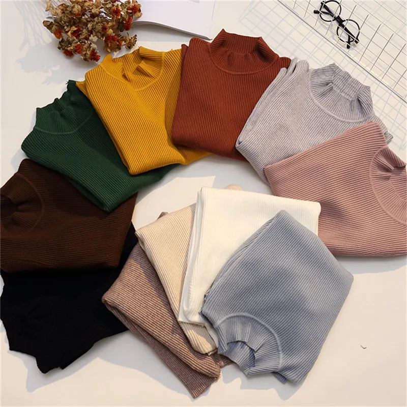 Осенне-зимний вязаный свитер, Корейская водолазка, офисный пуловер 2022, повседневный однотонный облегающий джемпер с длинным рукавом, топы