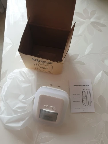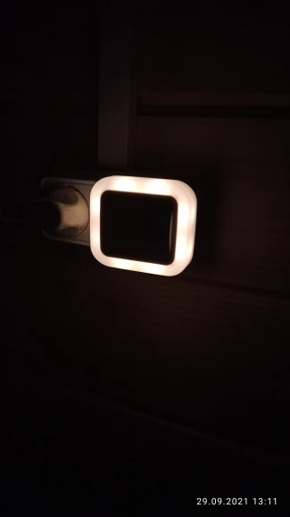 Хороший ночник, мне понравился. Самое главное светит тëплым белым (3000 Кельвинов), а то судя по многим фото, можно было бы подумать, что спектр света холодных тонов, но к счастью нет, в этом плане всë хорошо. Всего на приборе 2 кнопки, первая включает или отключает полностью ночник (из розетки можно не выдëргивать), с помощью второй меняется интенсивность яркости свечения, всего 5 режимов. Вот собственно и всë. Очень приятно, что яркость на любом из 5 режимов меняется в зависимости от степени освещения в помещении, чем ближе рассвет, тем ночник светится тусклее. Когда яркость в помещении значительная, ночник притухает полностью, датчик освещения работает отлично. Пришло в картонной упаковке, внутри маленькая инструкция. Потребление электроэнергии 0,5W, всего 8 светодиодов по 0,2W. На фото яркость начиная с первого режима и по пятый.