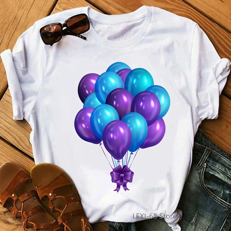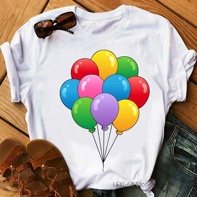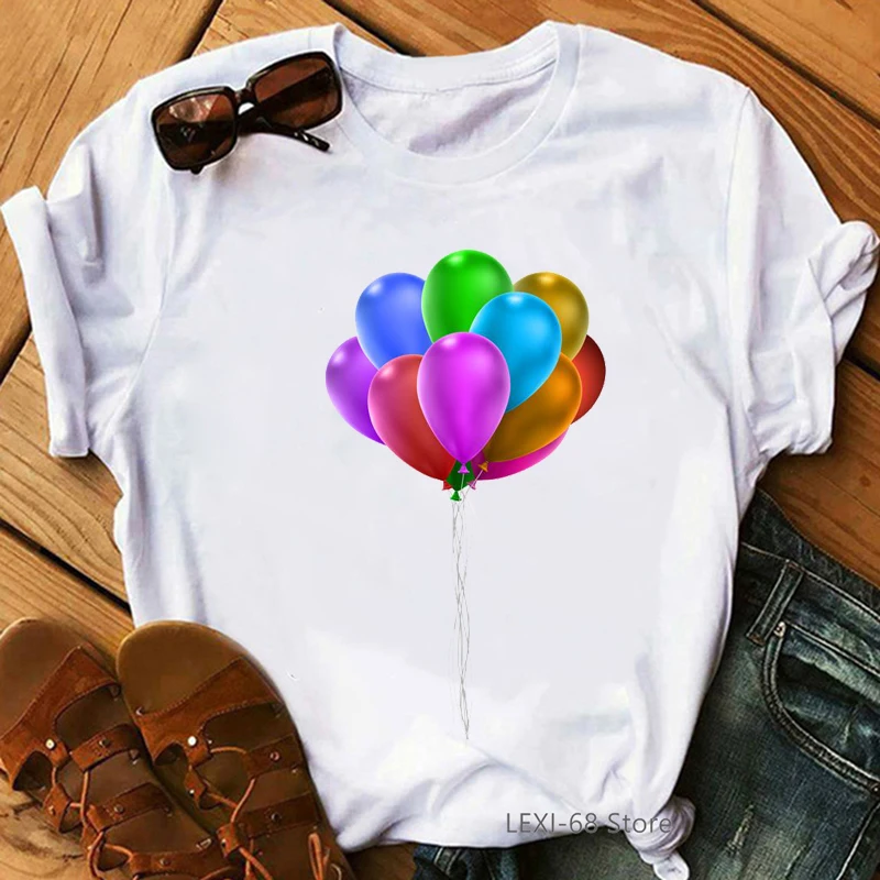Футболка с графическим принтом слона на день рождения, женская футболка с радужным воздушным шаром, женская рубашка в стиле Харадзюку, милая одежда, забавная футболка