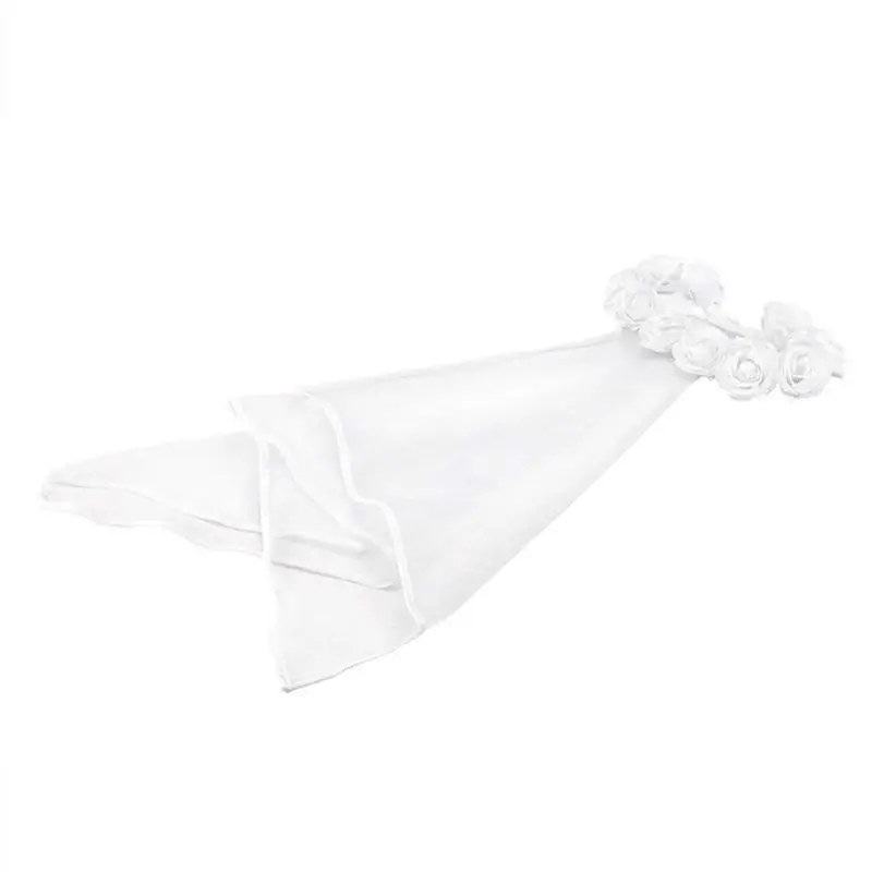Женский свадебный венок из вуали с белым цветком, венок для волос, свадебная головная повязка, корона, регулируемая лента на шнуровке, вечерние аксессуары для девичника