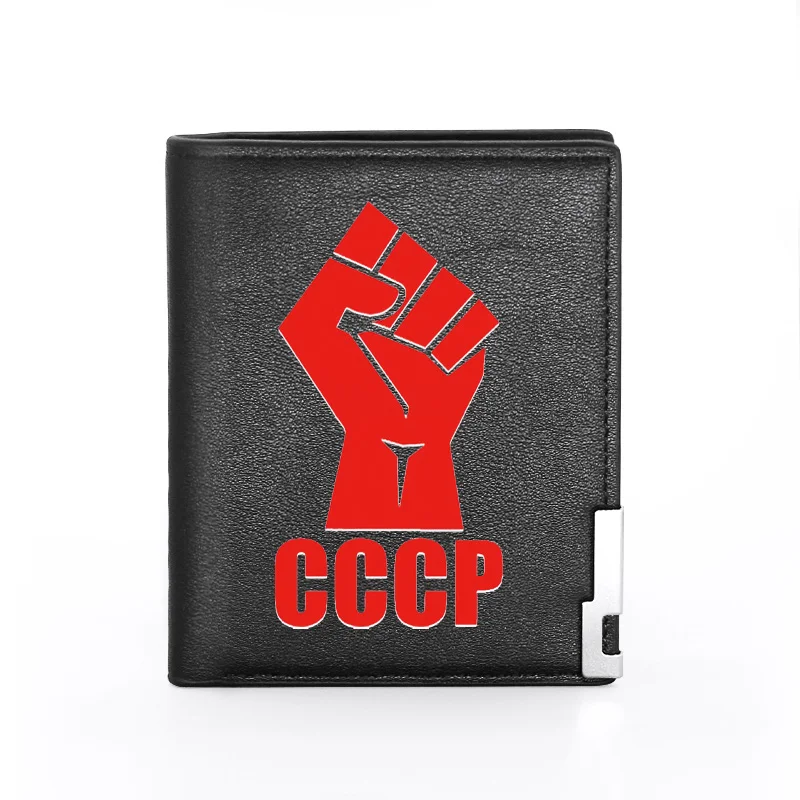 Высококачественный кошелек СССР с надписью Кулак Советского Союза, кожаный бумажник для мужчин и женщин, кредитница, короткий тонкий мужской держатель для мелочи