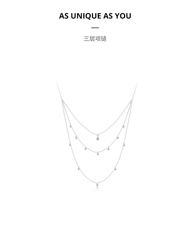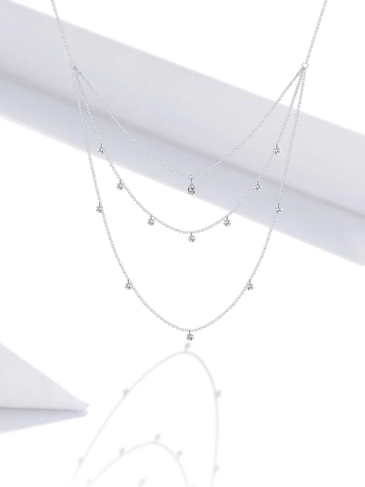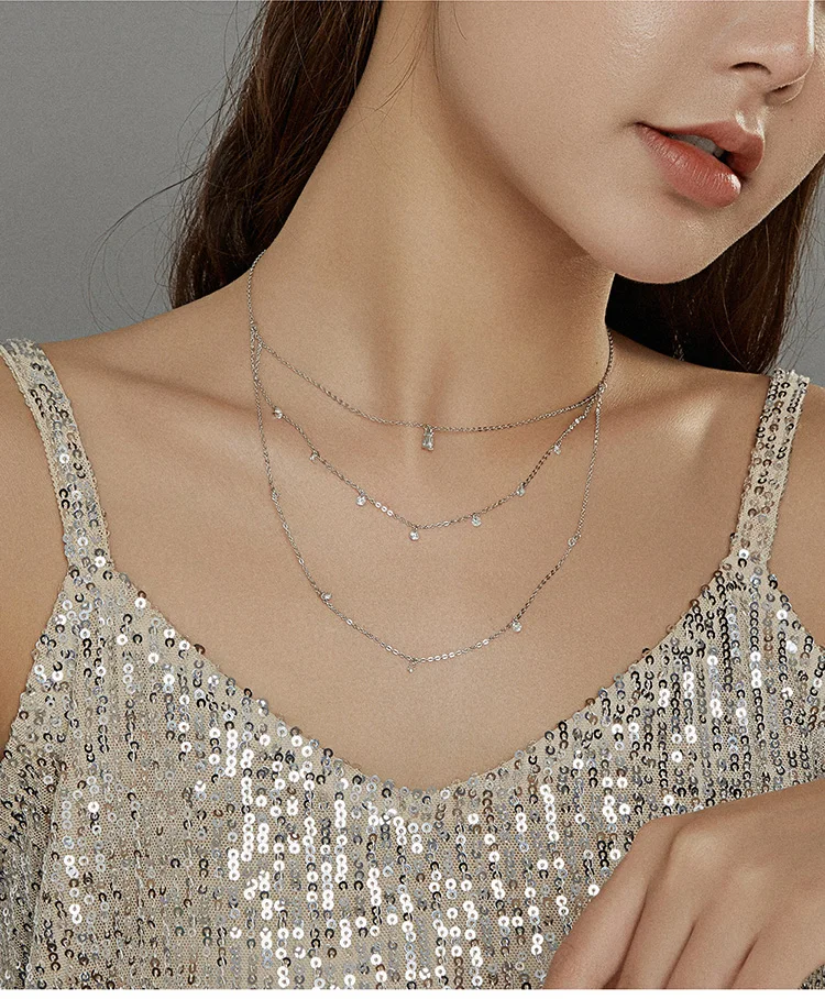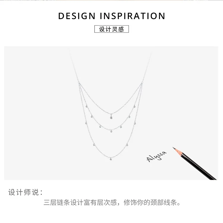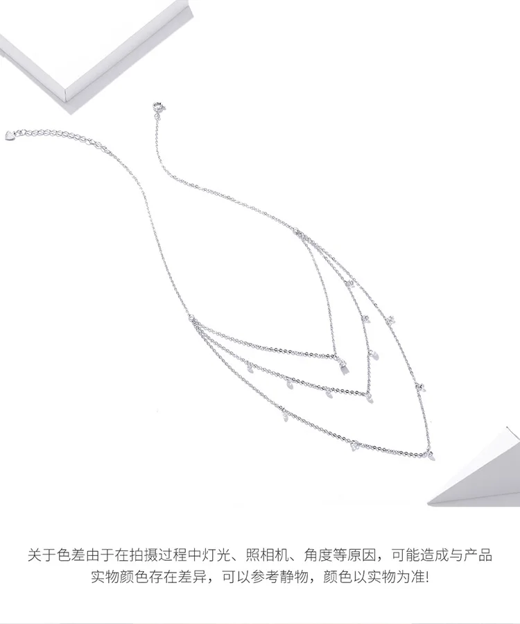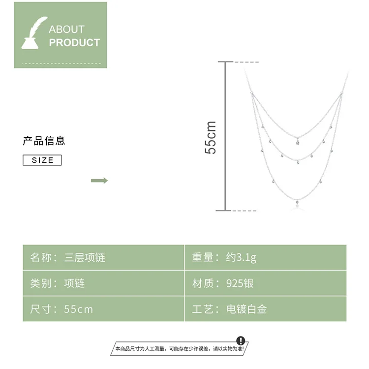 Трехслойное ожерелье BISAER, искусственное серебряное циркониевое звено цепи для женщин, ювелирные изделия, регулируемое Ожерелье 45 см ECN429