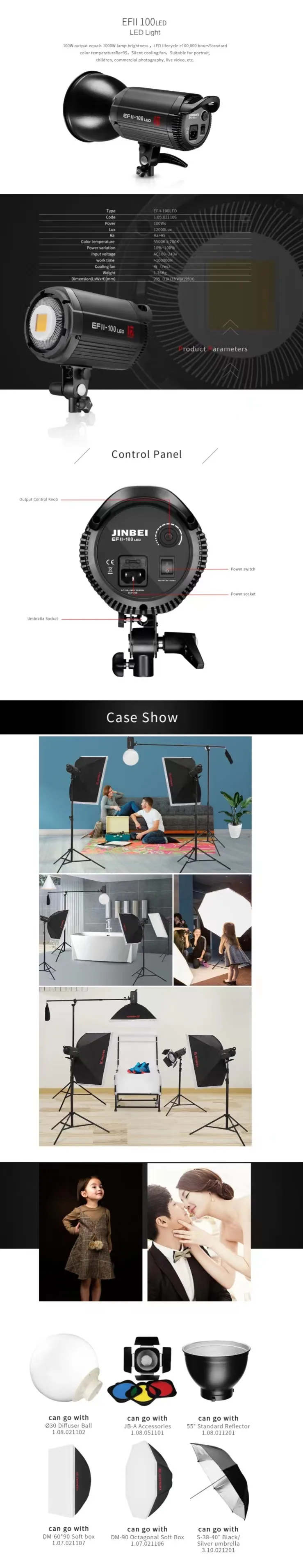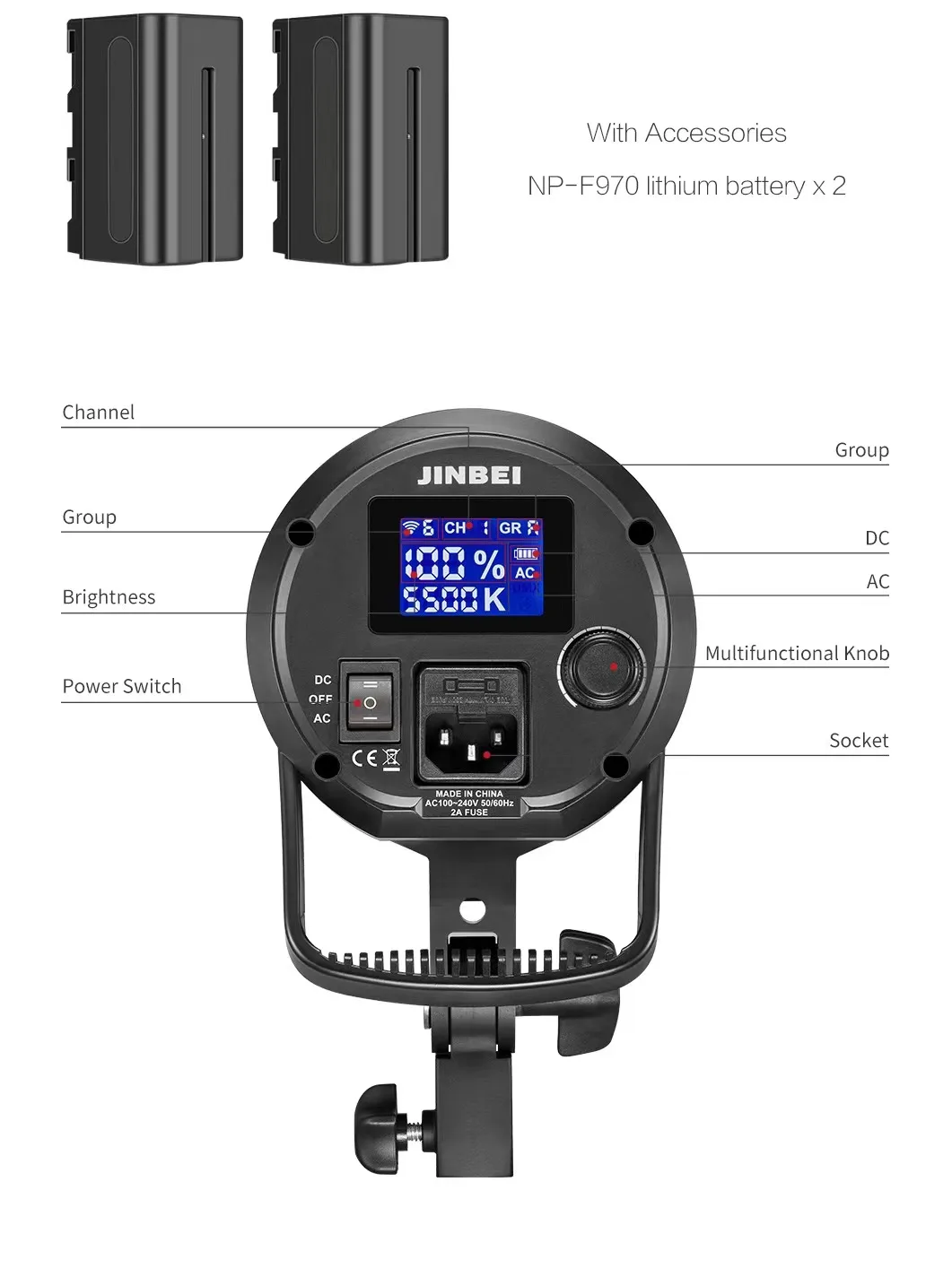 Светодиодный светильник Jinbei, фонарь дневного света 60 Вт 100 Вт (включая. Портативный отражатель) VS Aputure LS 600d Pro 600W