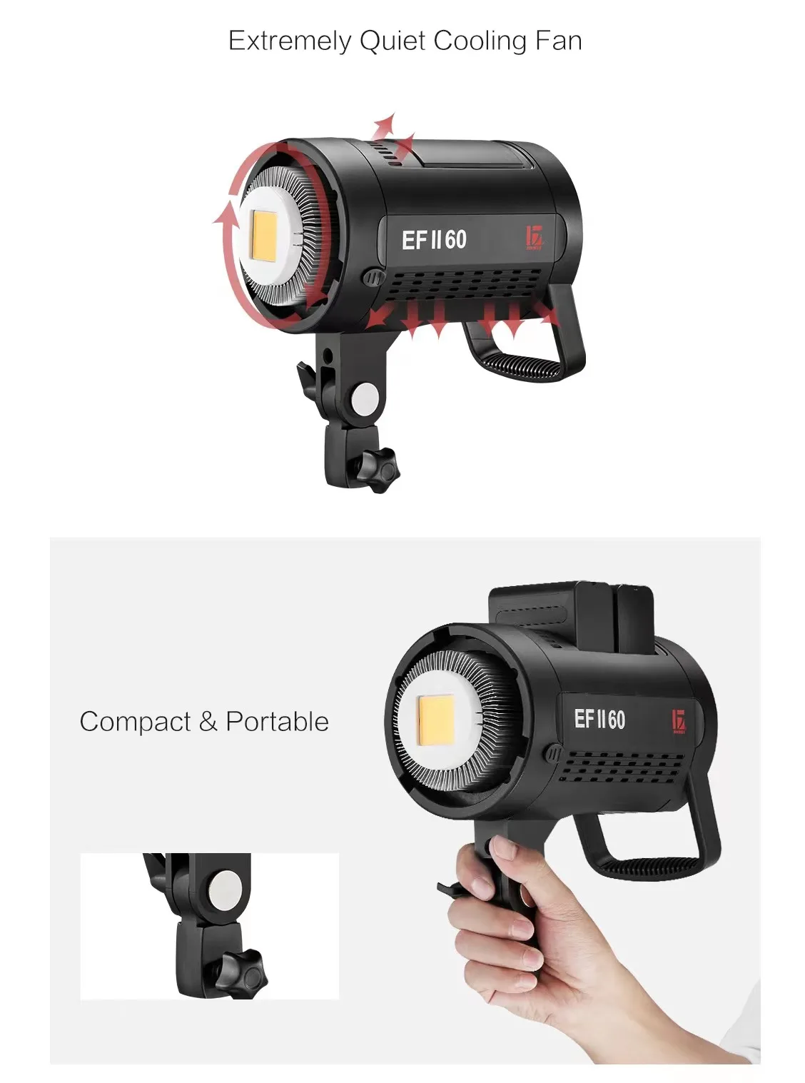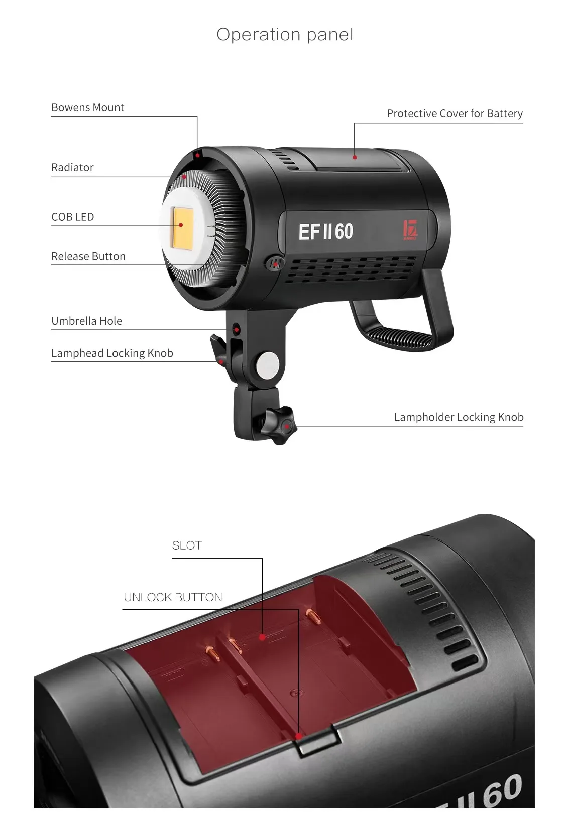 Свет понравился. Меньше и легче, чем Godox sl60. Светит, похоже, капельку ярче. Корпус пластиковый. Шнур питания длинный, но вилка китайская, надо переделывать. Покупал ради работы от батарей, с этим проблем не заметил - работает. Посылка приехала быстро, за пару недель. Продавца рекомендую