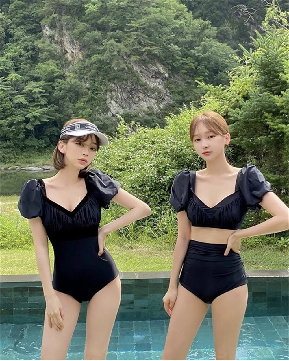 Цельный купальник с коротким рукавом, Женский однотонный купальник, плиссированные Монокини, купальник пуш-ап, купальный костюм в Корейском стиле с подкладками и оборками