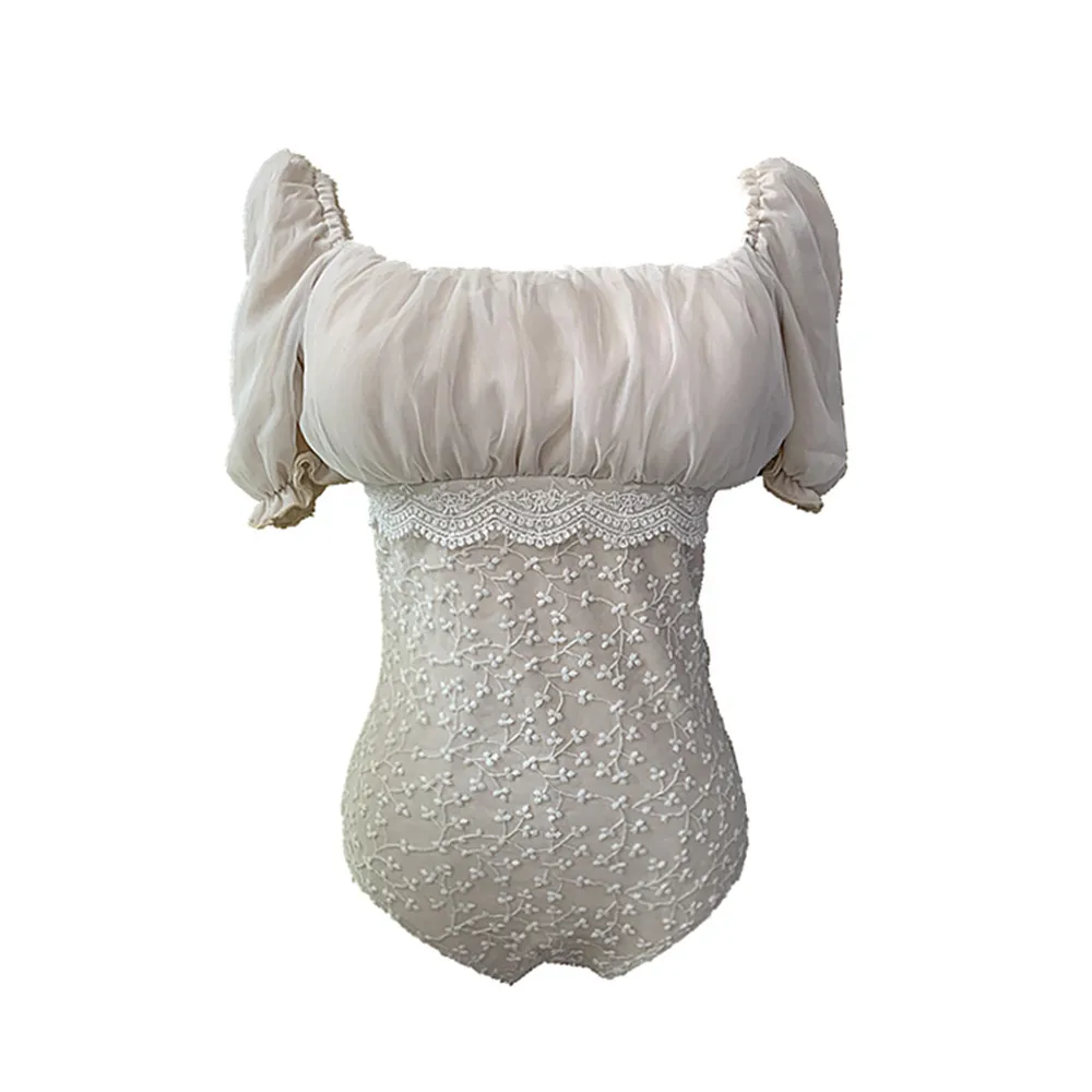 Сексуальный кружевной цельный купальник женский однотонный белый ку...