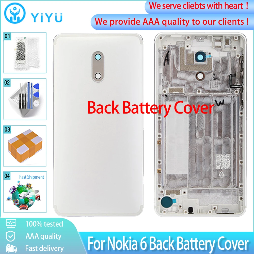 Оригинальный корпус Matel для Nokia 6 TA-1021 TA-1033 TA-1025, задняя крышка аккумулятора с боковыми клавишами, стеклянный объектив камеры, запасные части