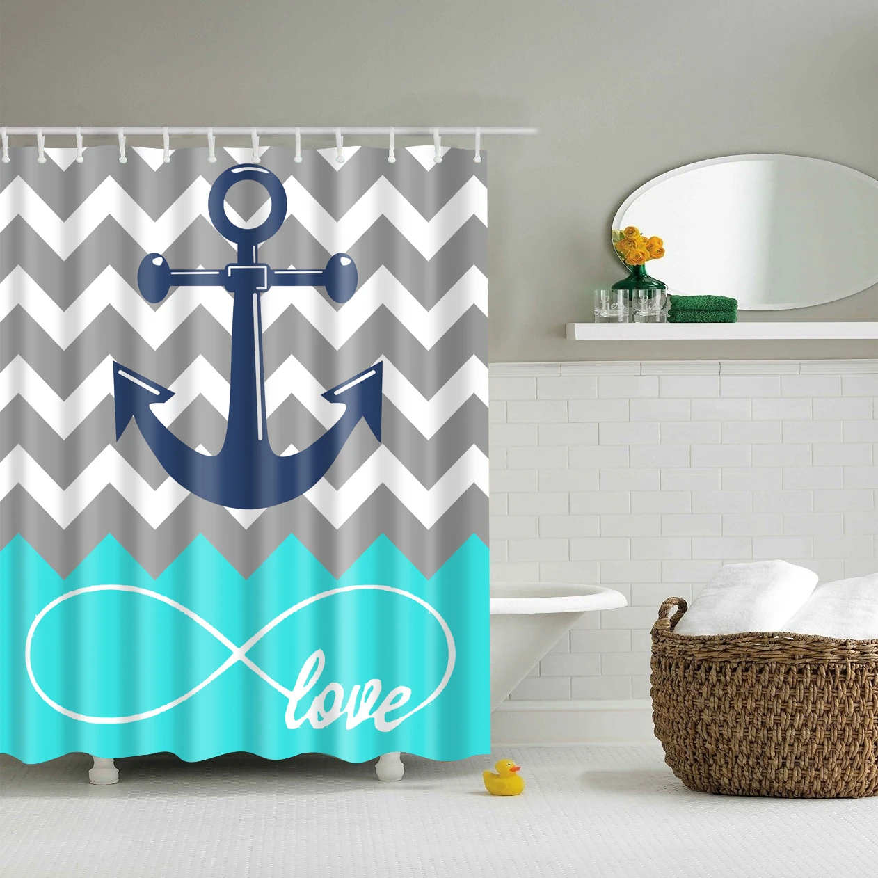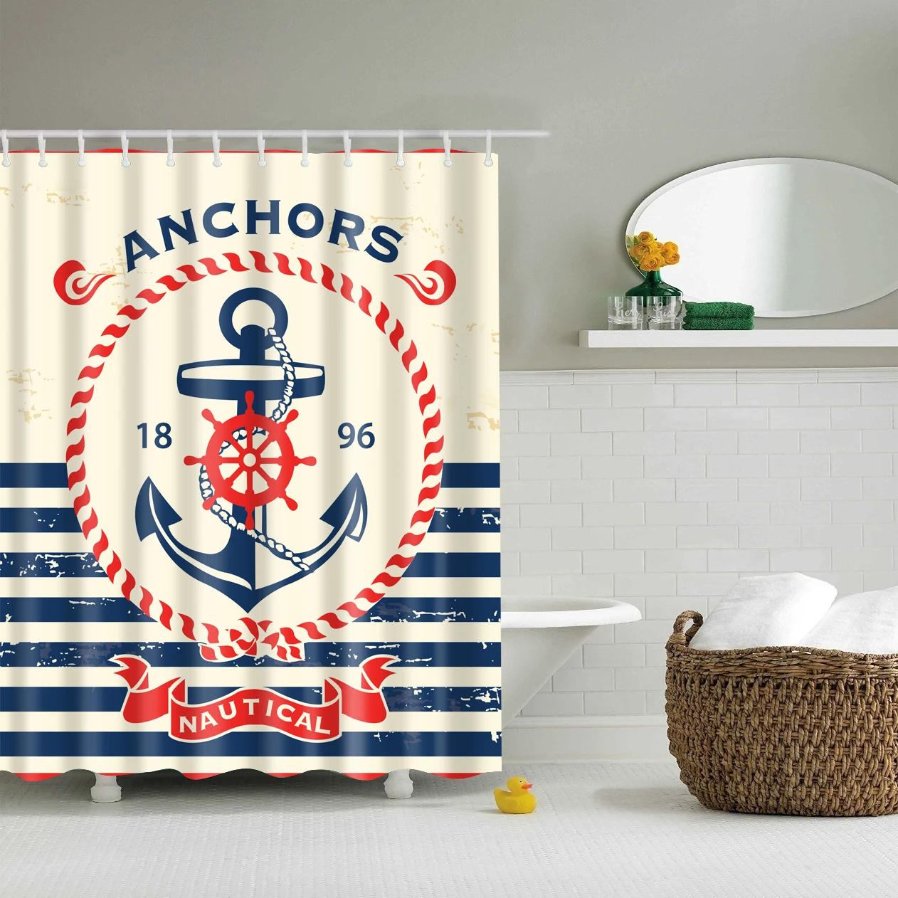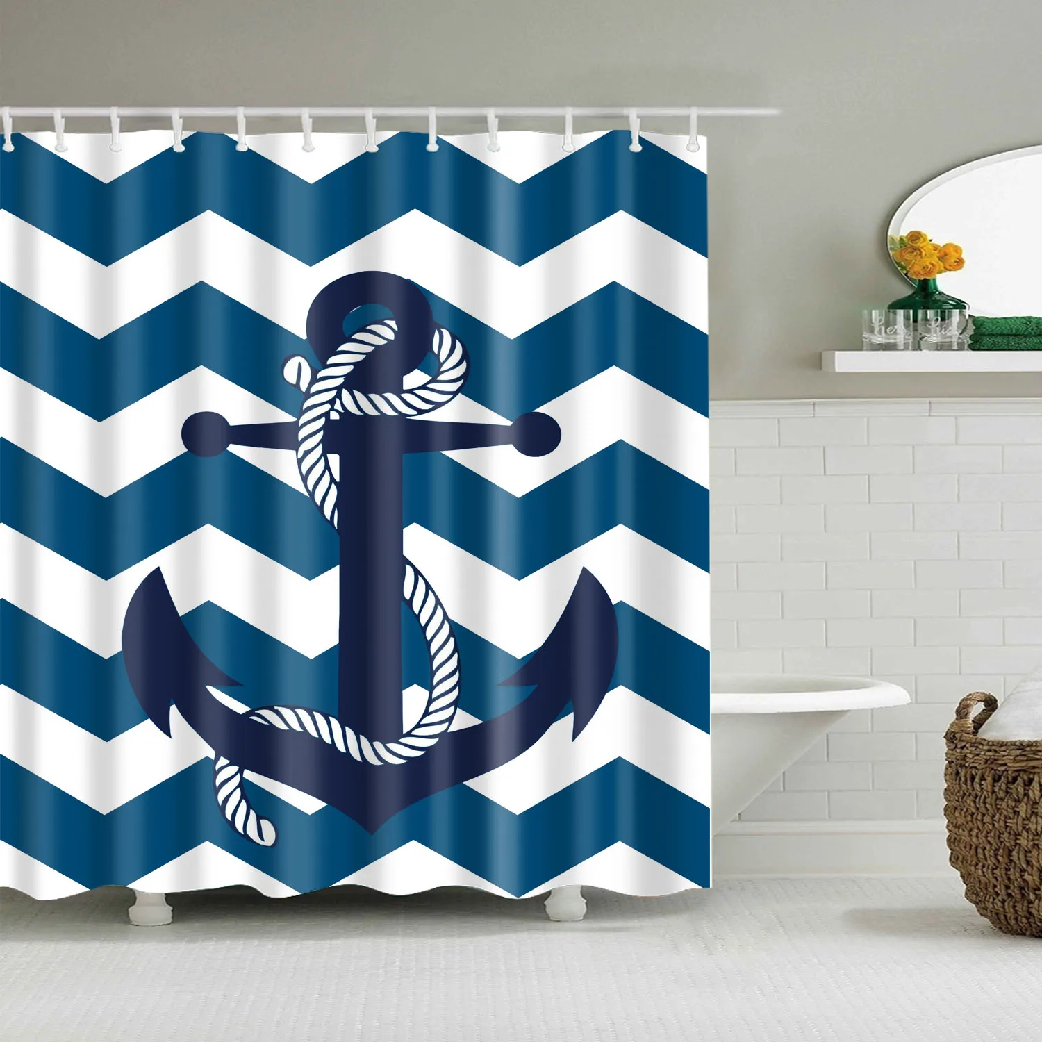 Шторы для душа с принтом морской ракушки и якоря, водонепроницаемые...