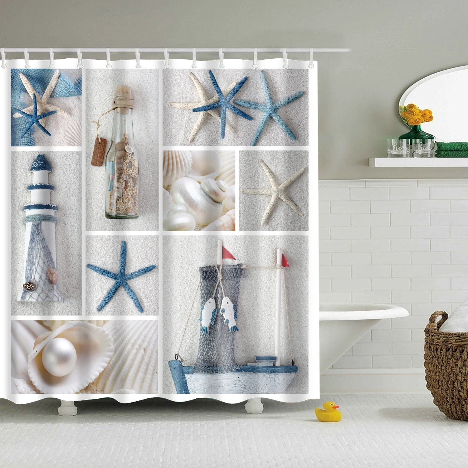 Занавеска для душа, водонепроницаемая, с принтом, для пляжа, с 10 к...
