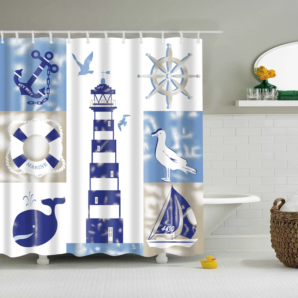 Водонепроницаемая занавеска для душа в ванную комнату с принтом мор...