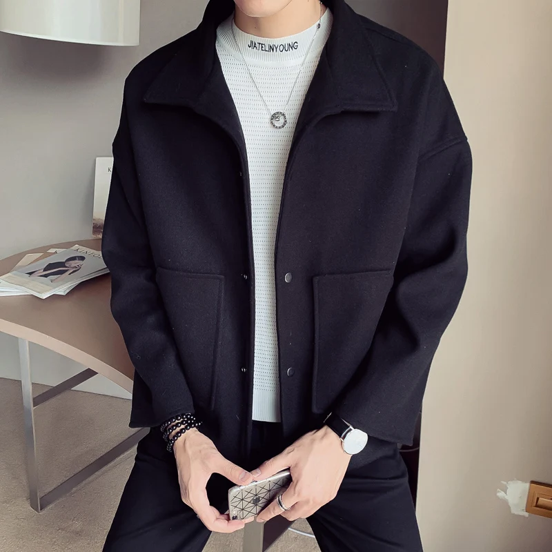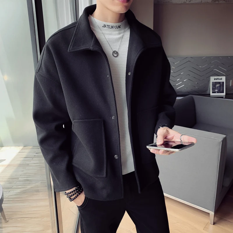 Куртка Legible Мужская шерстяная, повседневное приталенное Короткое шерстяное пальто, однотонные зимние куртки