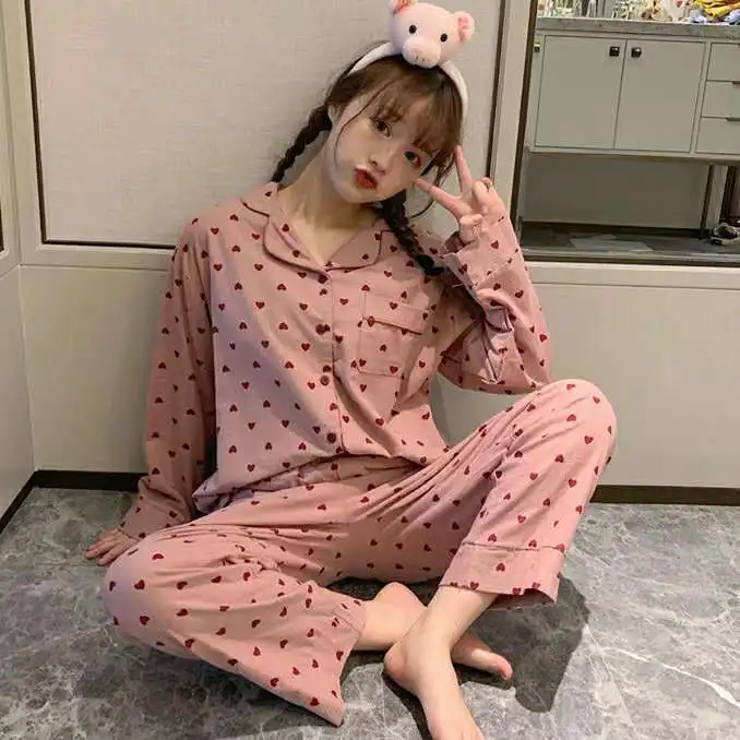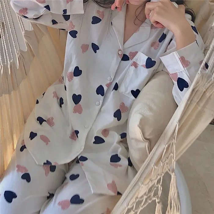 Пижамный комплект женский с длинным рукавом, удобная Милая одежда для сна для студентов, милая домашняя одежда для девушек, пижама в коровьем стиле, Корейская Ночная сорочка