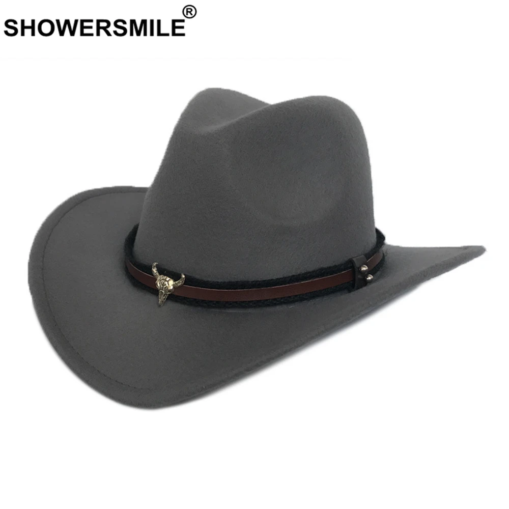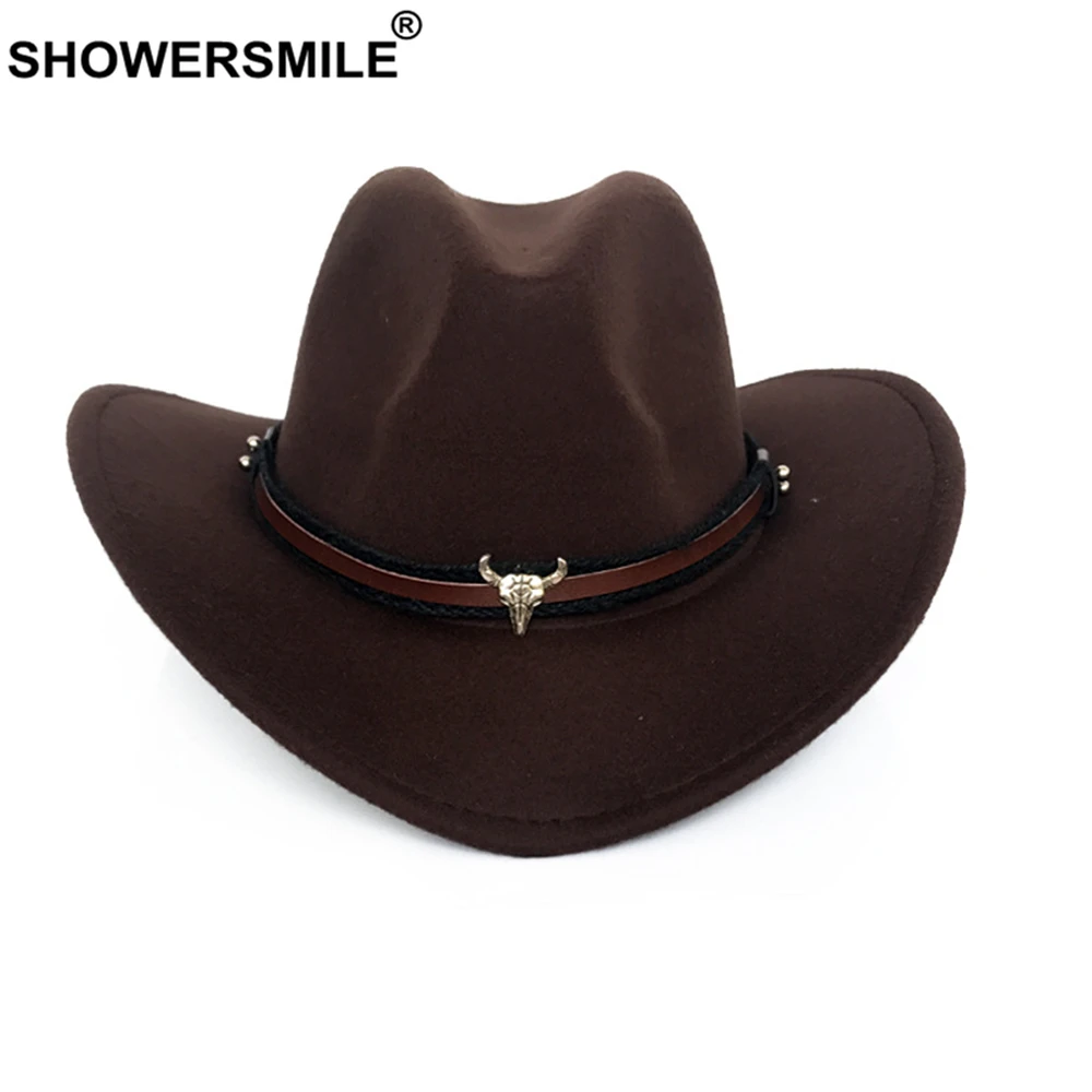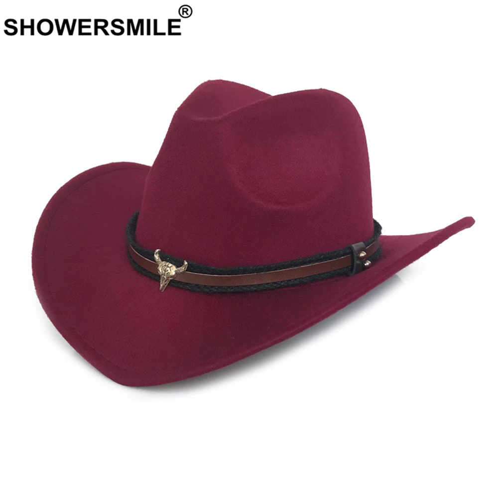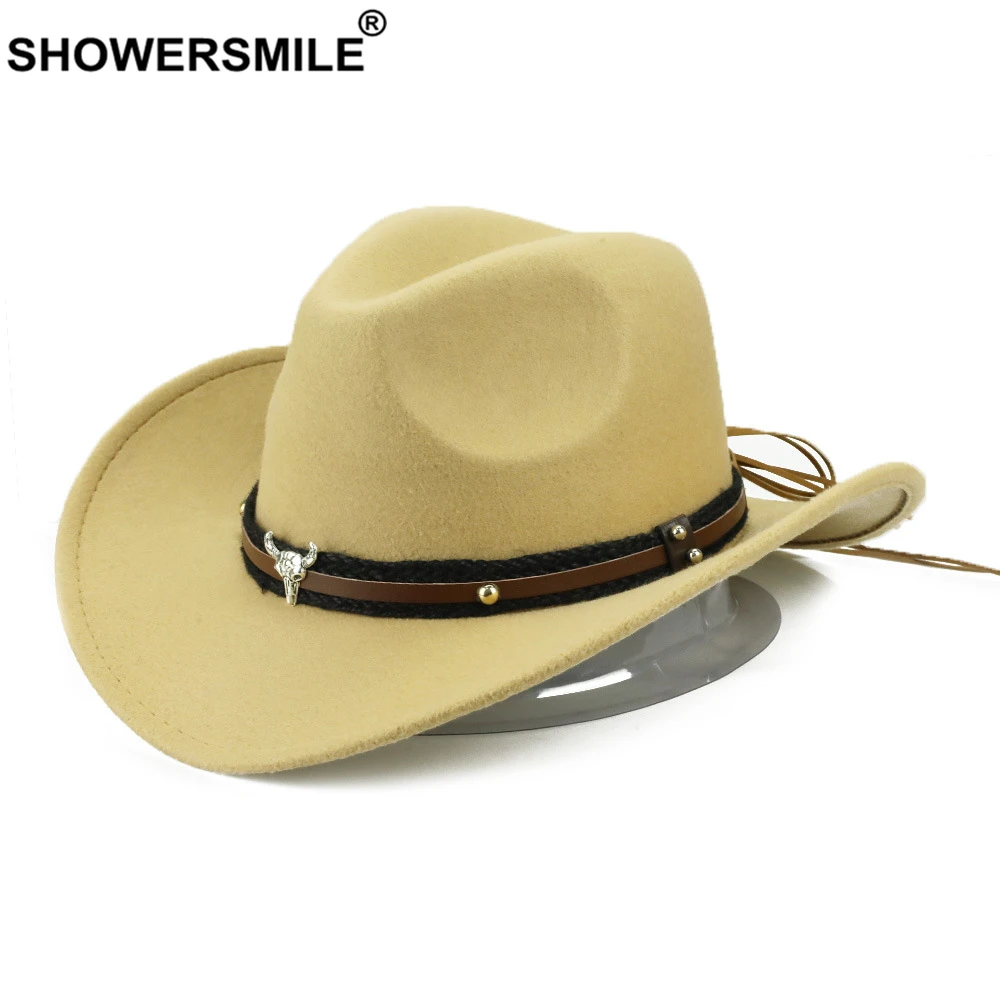 Ковбойская шляпа SHOWERSMILE в стиле вестерн для мужчин и женщин, элегантная винтажная шапка джентльмена и джаза из коровьей кожи, в стиле джаз, Осень-зима, ковбойские шляпы для женщин