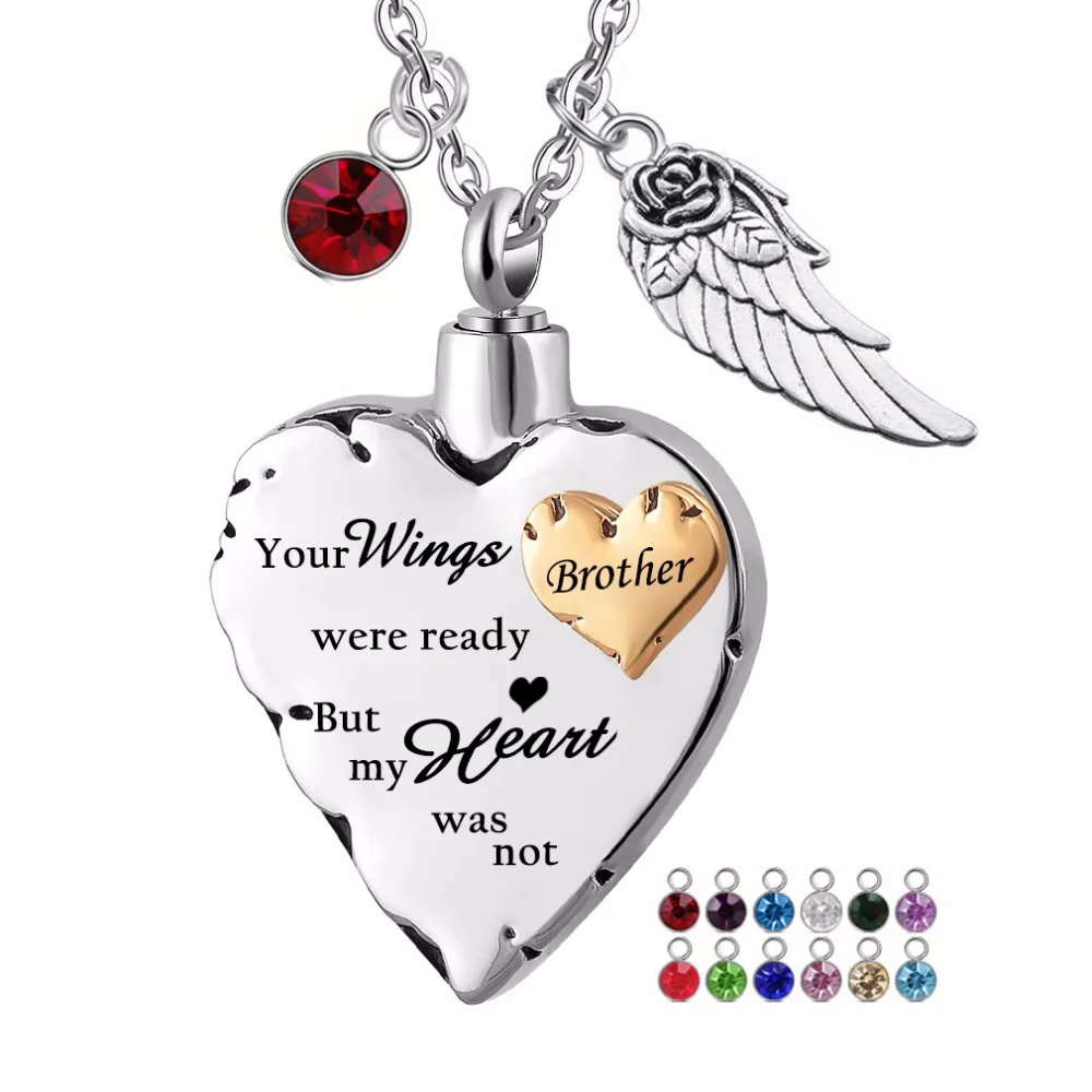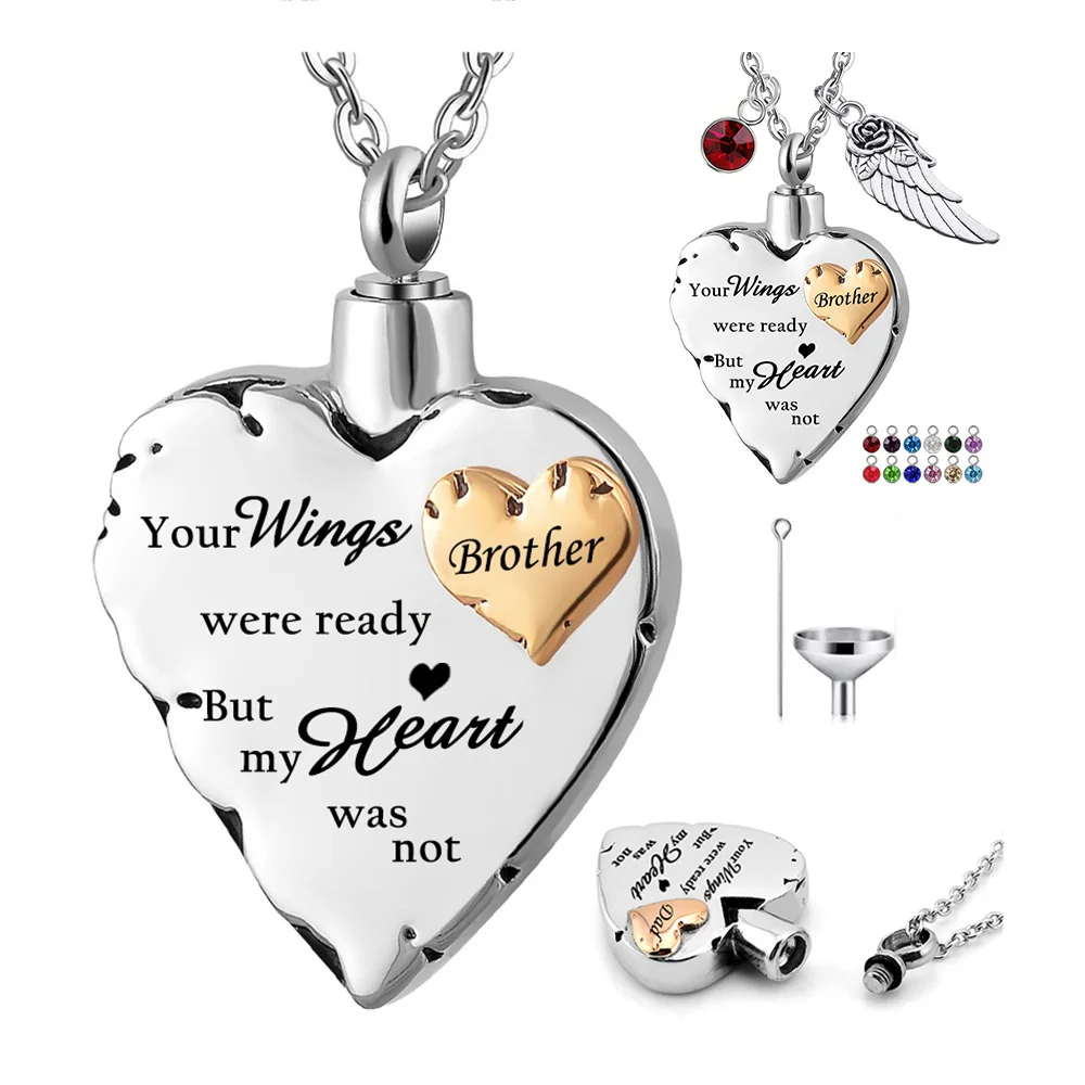 Кремационные украшения для золы, Brother Your Wings были готовы, выгравированное женское ожерелье, памятный сувенир, подвеска