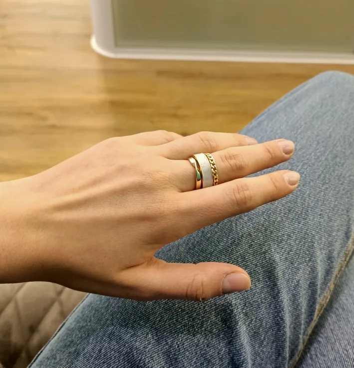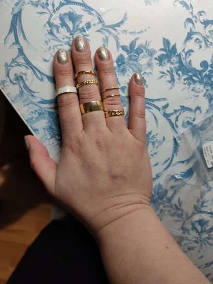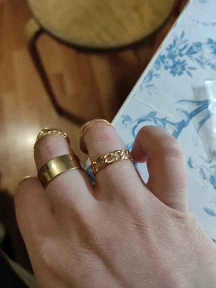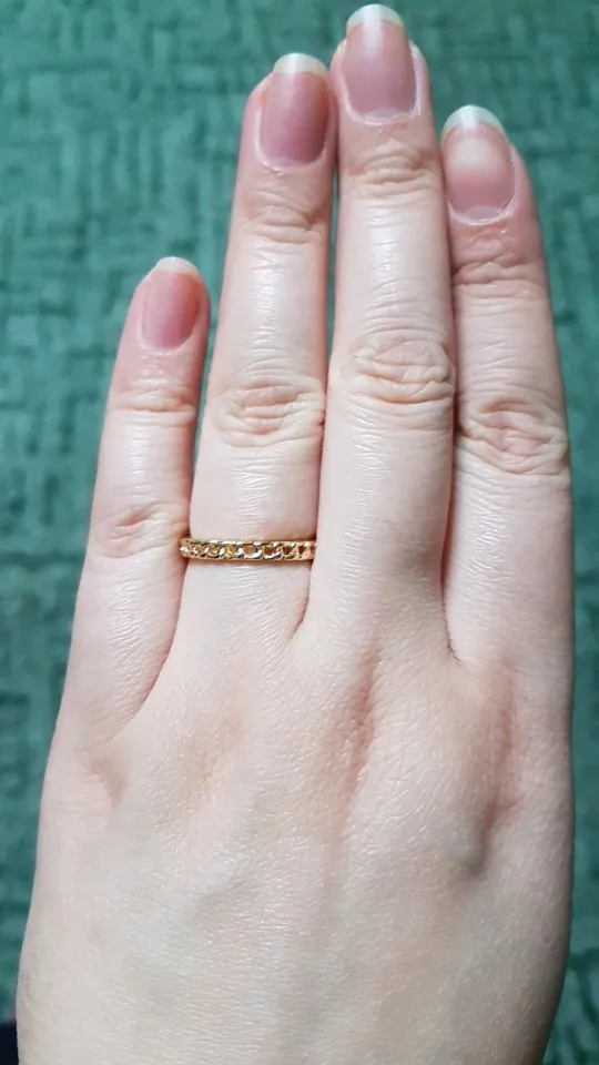 Отличные кольца, пришли быстро. Супер смотрятся на тонких пальцах (размер 16,5), при контакте с водой сразу не облазят - не знаю как будет дальше. Смотрятся качественно. Размер немного регулируется.