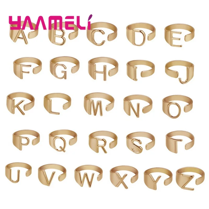Модные женские сплава Открытые Кольца A-Z Письмо Кольцо Дамы реальн...