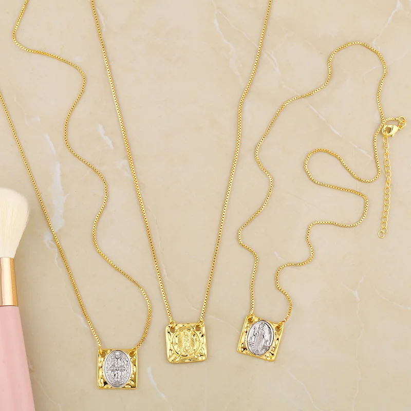 Ожерелье FLOLA с позолотой Девы Марии для женщин, полированное ожер...