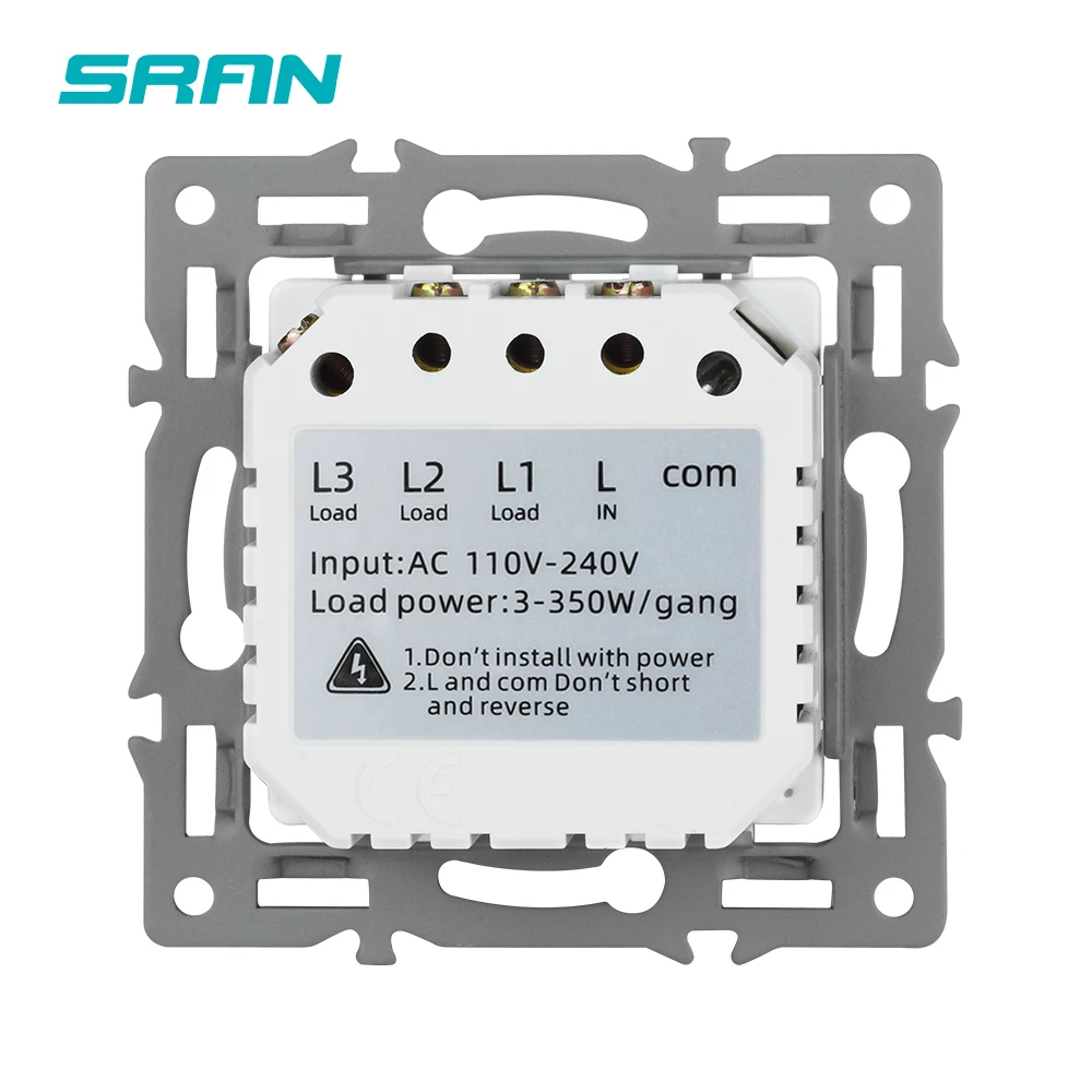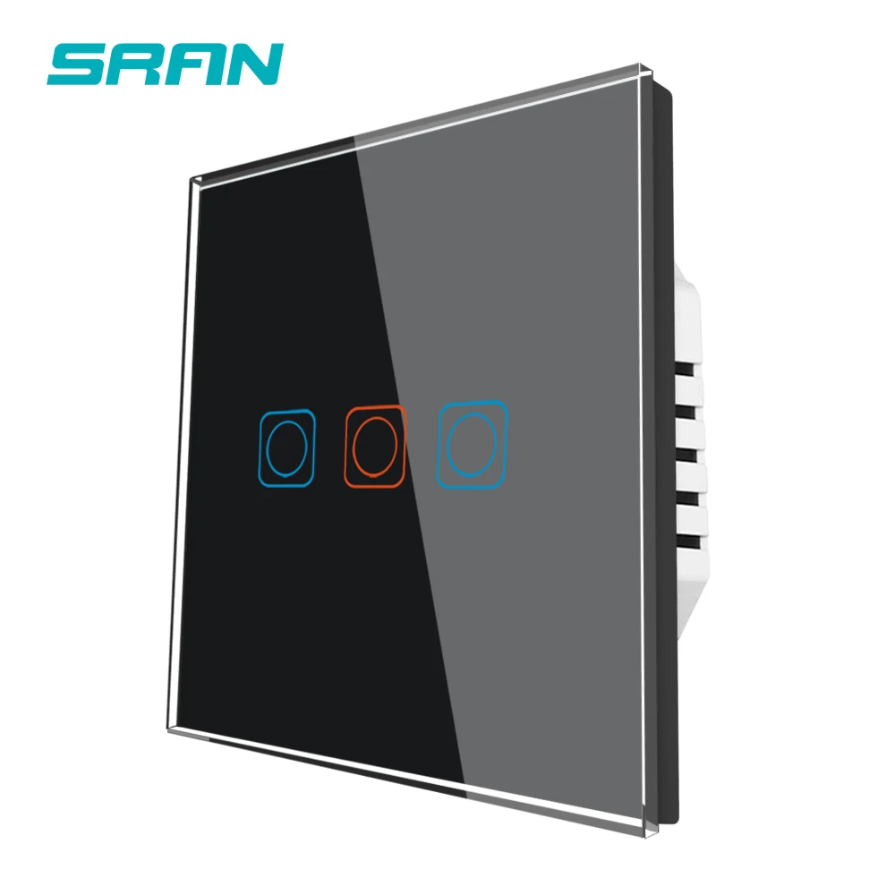 Роскошный настенный сенсорный выключатель SRAN, светодиодный выключатель 220 В европейского стандарта, выключатель питания, белое Хрустальное стекло, 3-х канальный 1-ходовой выключатель 82*82