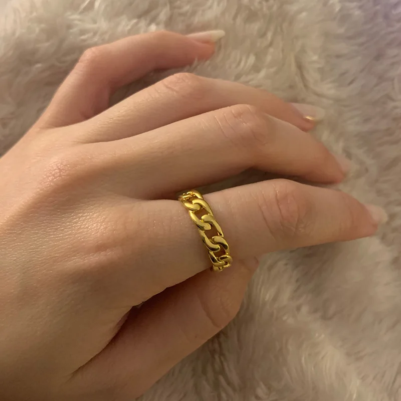Золото из нержавеющей стали КУБИНСКИЙ звено цепи кольца для женщин Роскошные ювелирные изделия в стиле хип-хоп мода Мужская кольцо ювелирное изделие для пары, свадебный аксессуар для пальцев