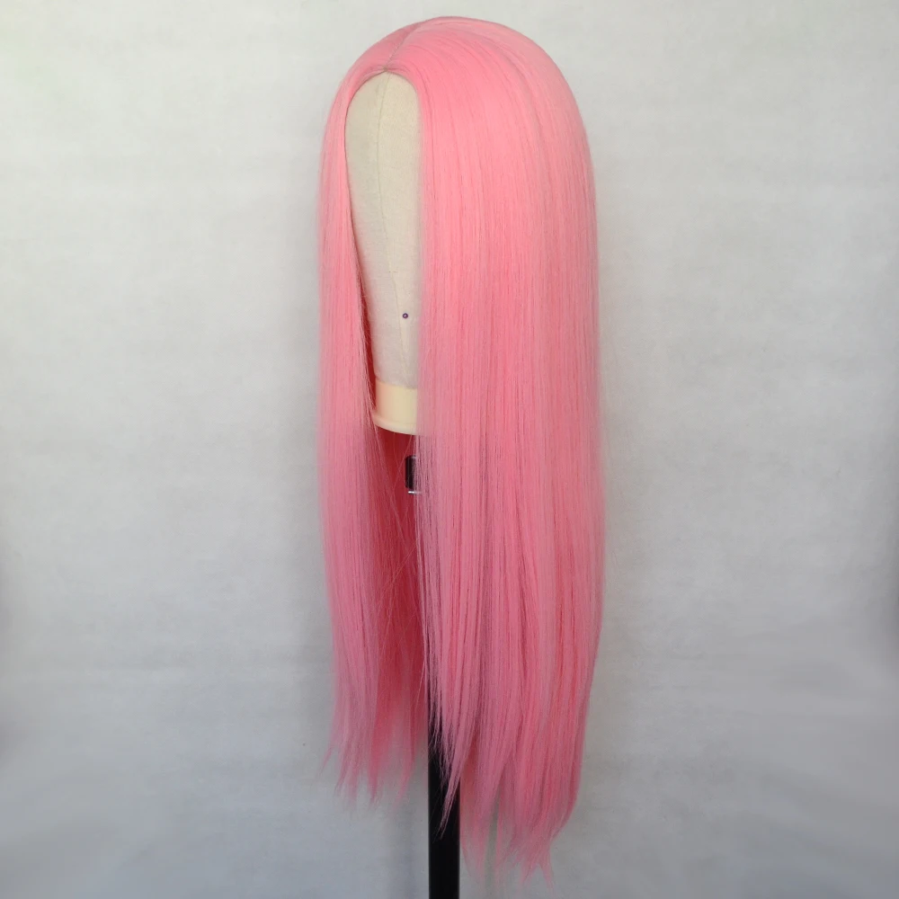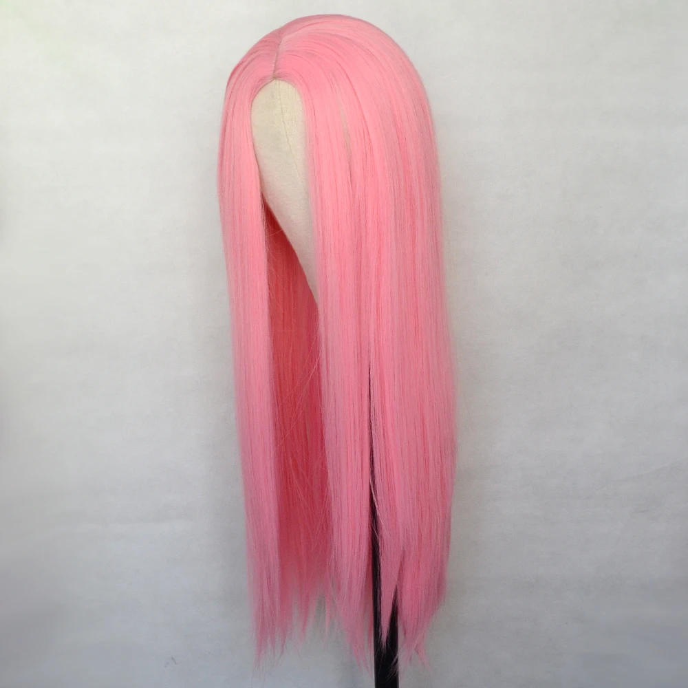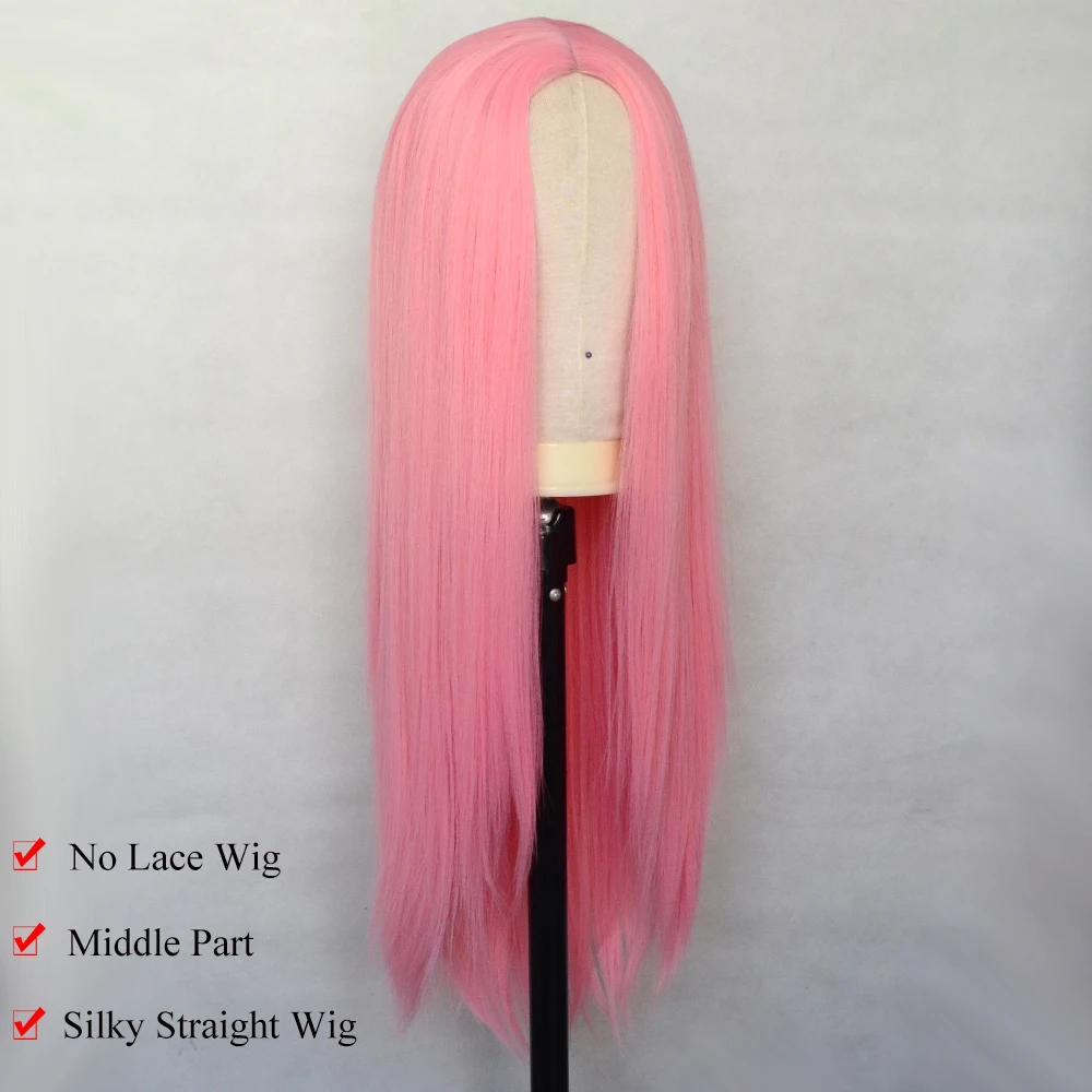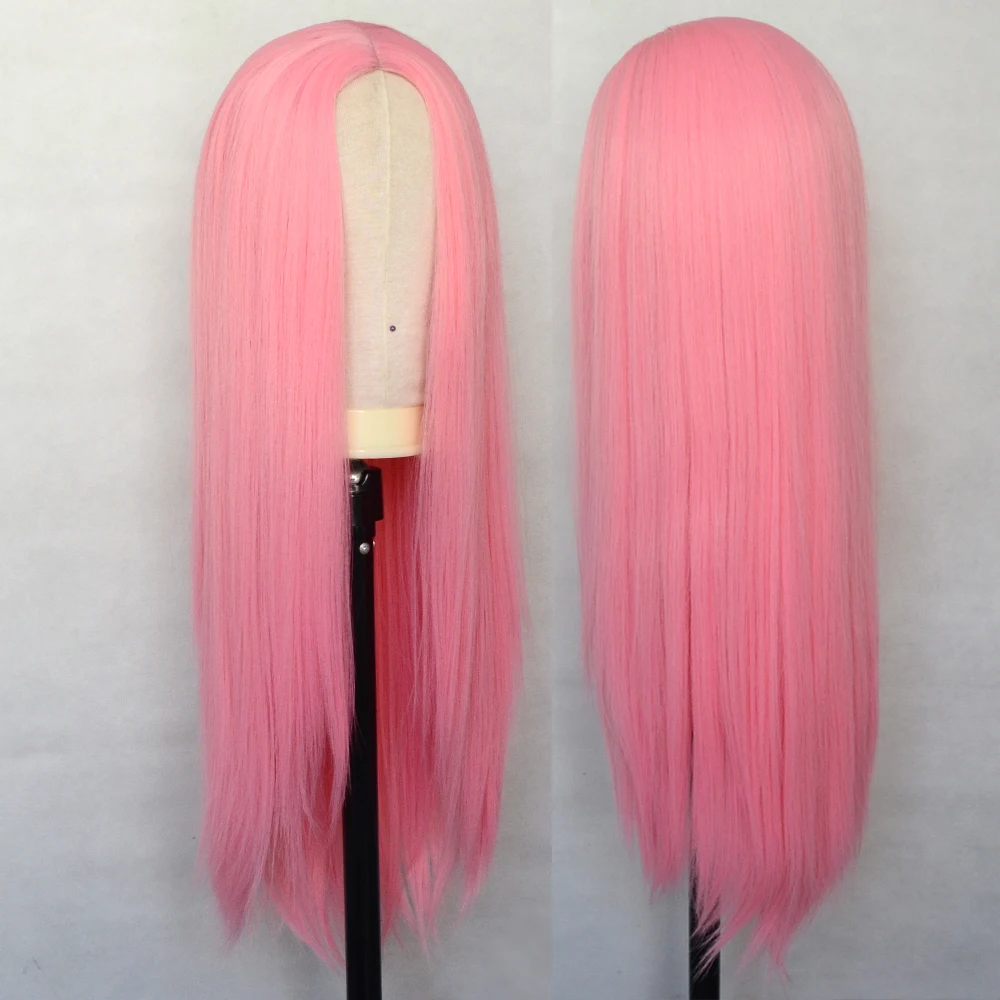 Парик Vogue Queen светильник-розовый синтетический длинный шелковистый прямой парик полностью изготовленный в машине Термостойкое волокно для женщин